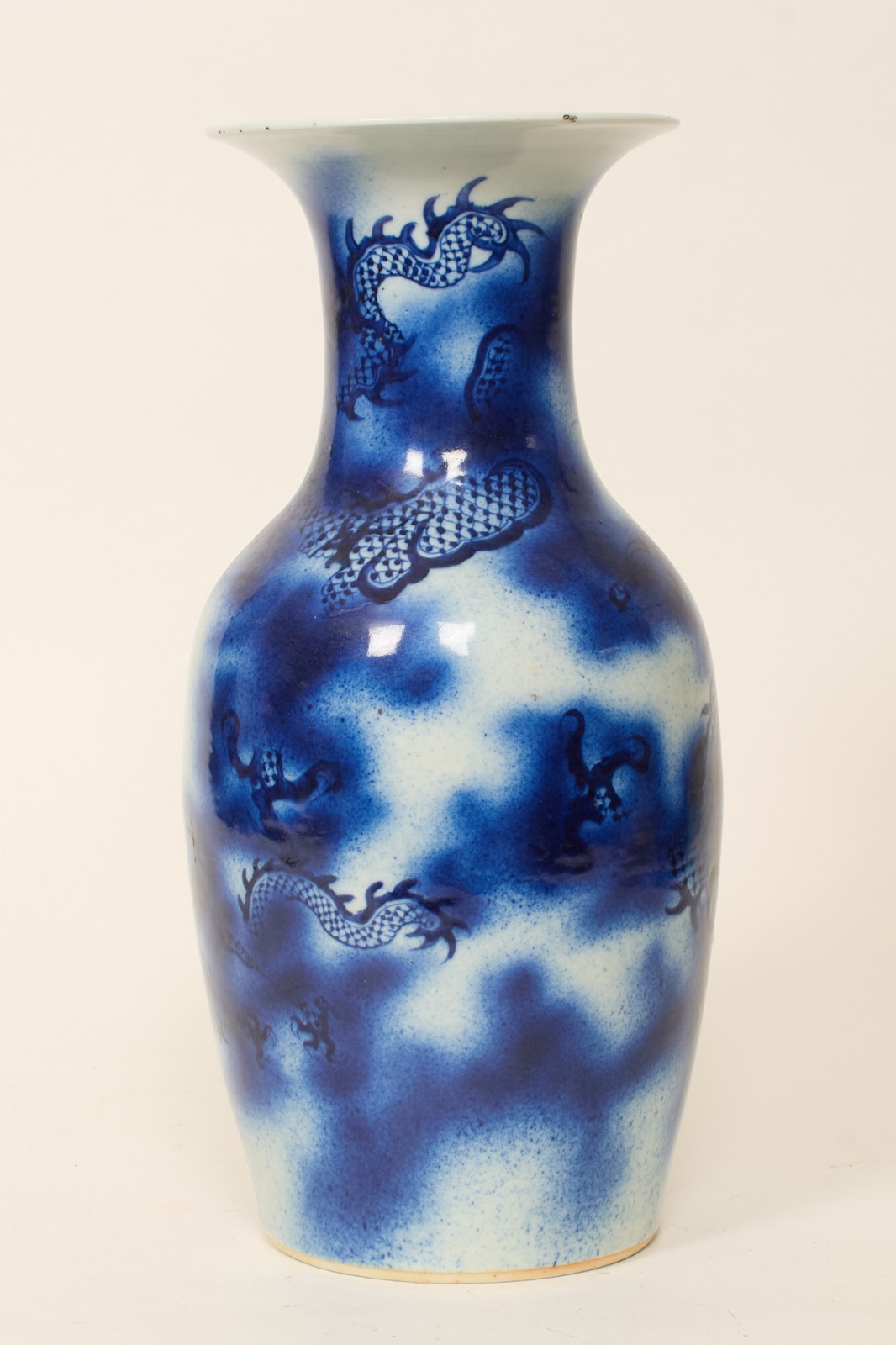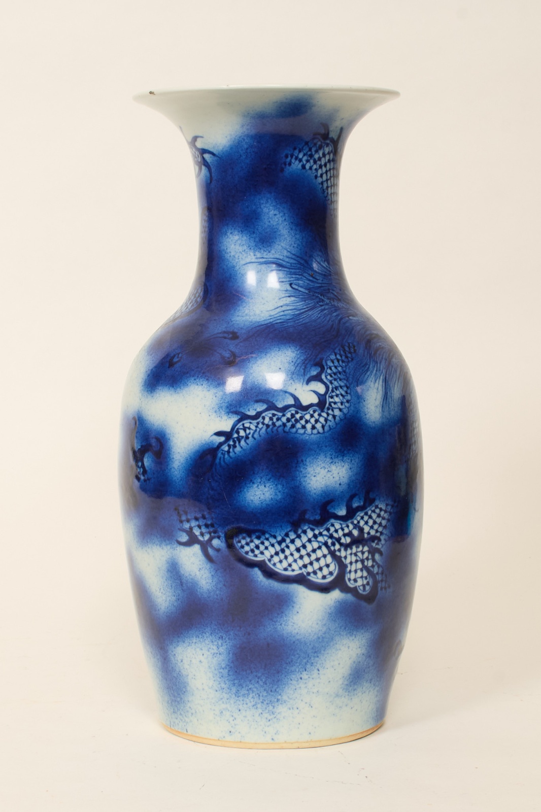 Tidigt 1900-tal. Dekor i underglasyrblått. Drakmotiv. Höjd 44,5 cm. Tillverkningsdefekter, liten nagg i mynning.