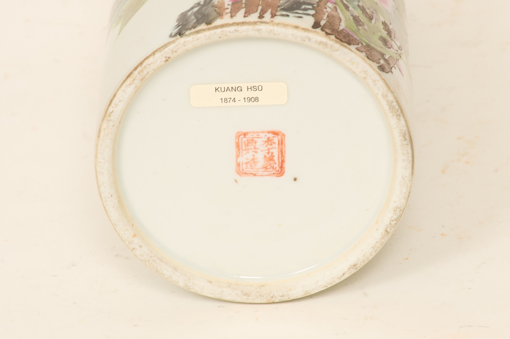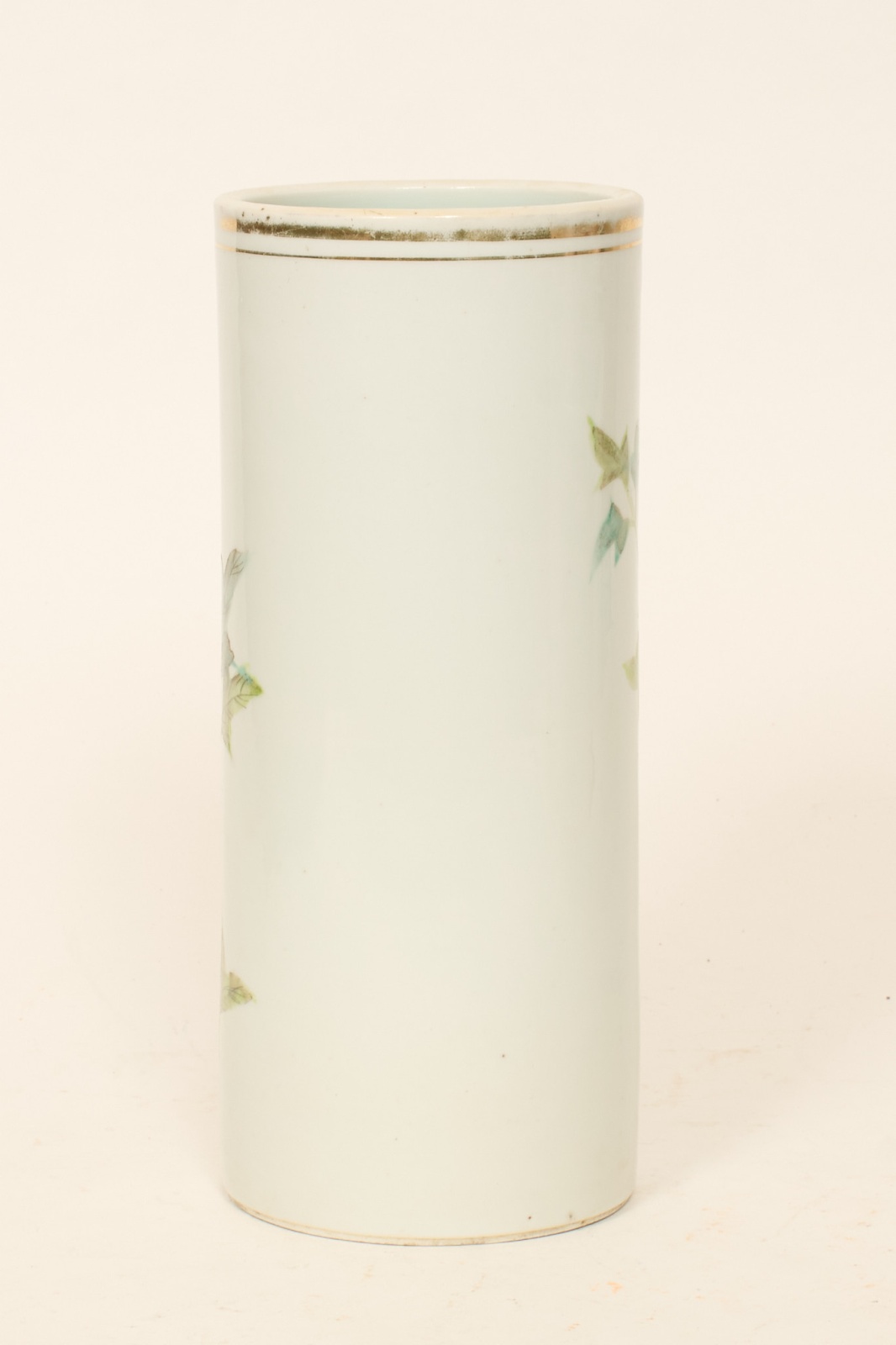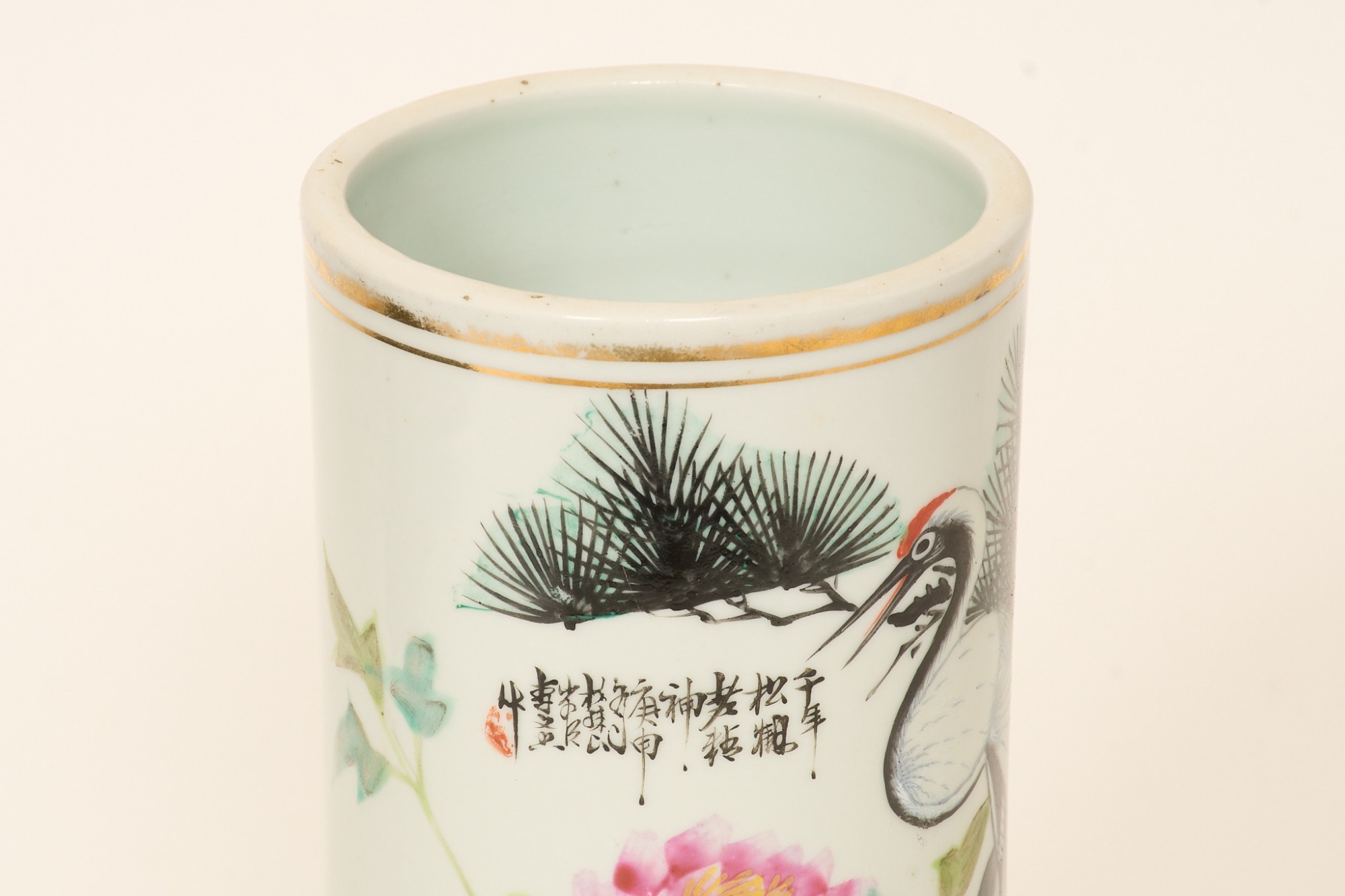 Dekor av fåglar, samt blommor i Famille Rose, kalligrafi höjd 29 cm, visst dekorslitage, för övrigt smärre bruksslitage.