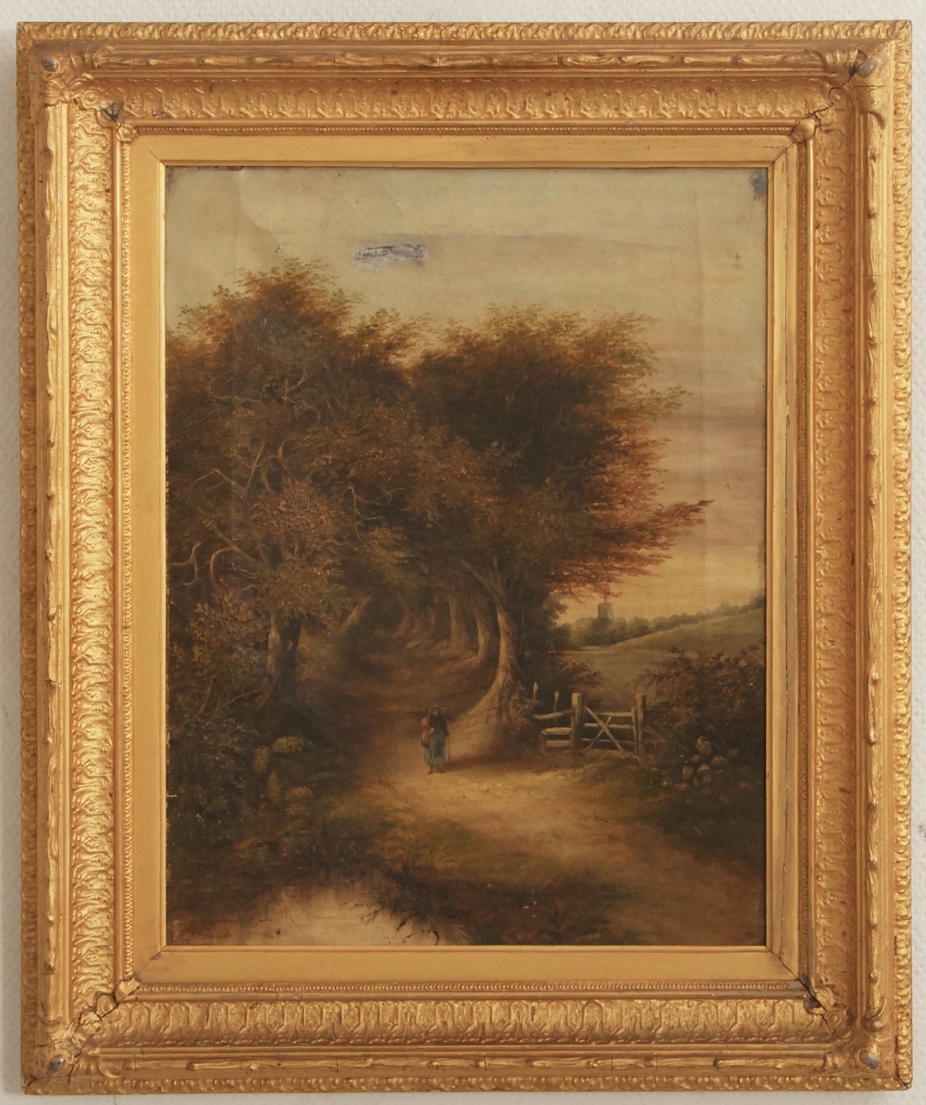 Engelsk landskap med figur, 47 x 36 cm, osignerad, retuschering på duk