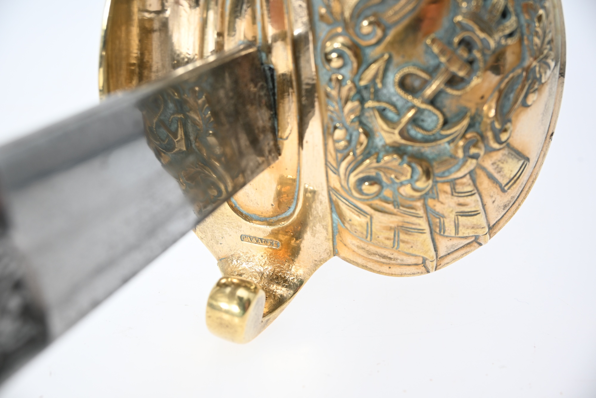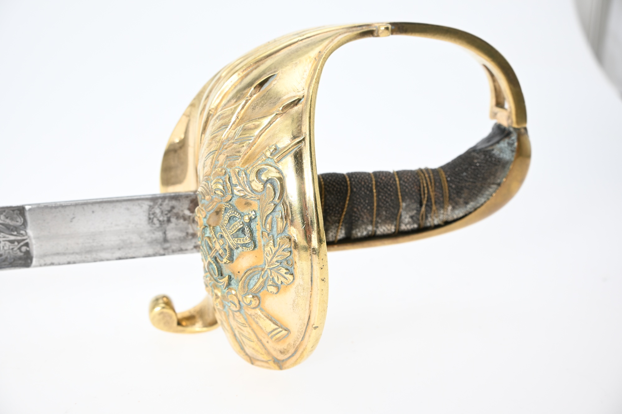 Klingan med etsad dekor, klingans längd 74.5 cm, totallängd 88 cm