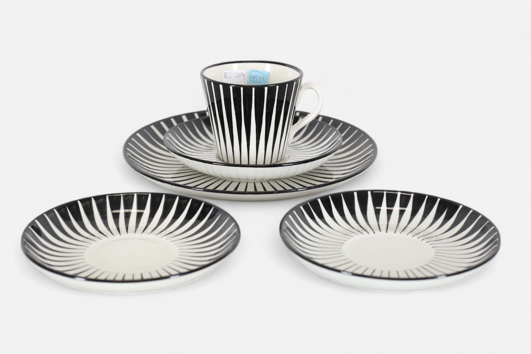 EUGEN TROST (1898-1983), kaffegods, 1 st, samt extrafat, 2 st, och assiett, "Zebra", Gefle Porslinsfabrik