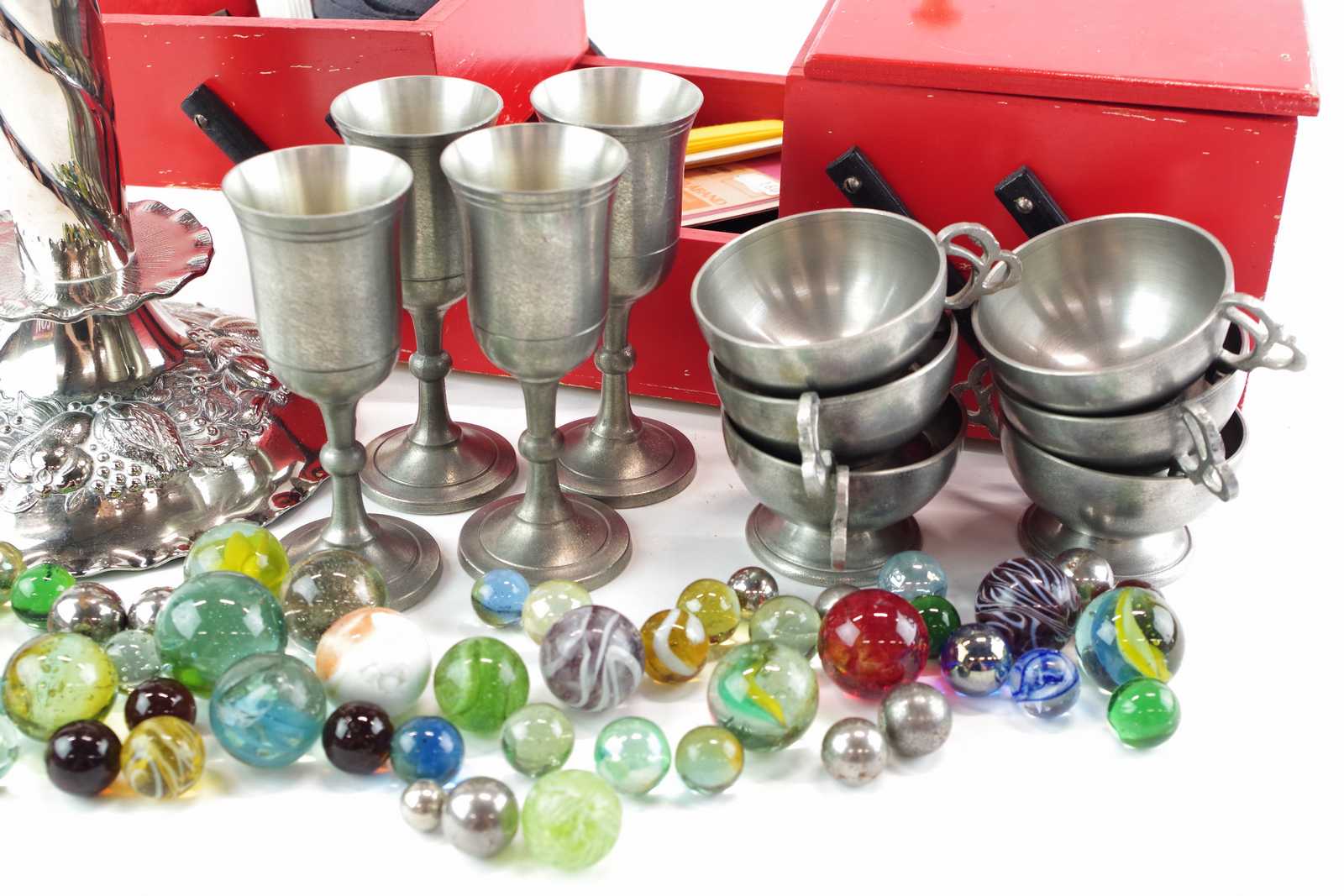 Bilder SYSKRIN 10*28*14 cm, TENNGLAS, TENNKOPPAR, LJUSSTAKE & SPELKULOR
