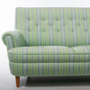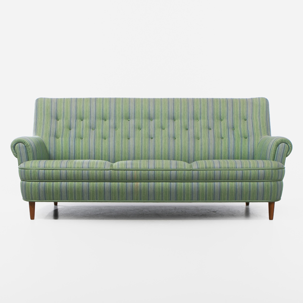 CARL MALMSTEN, soffa, "Hemmakväll", AB O.H. Sjögren, fast stoppad sits och rygg, randig klädsel, brickmärkt, tresits.