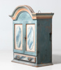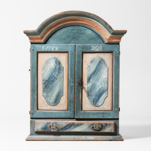 HÄNGSKÅP, Östra Småland, allmoge, originalmålat, daterat 1828, monogramsignerad, furu, nyckel och lås finnes, dörr under låda, originalbeslag.