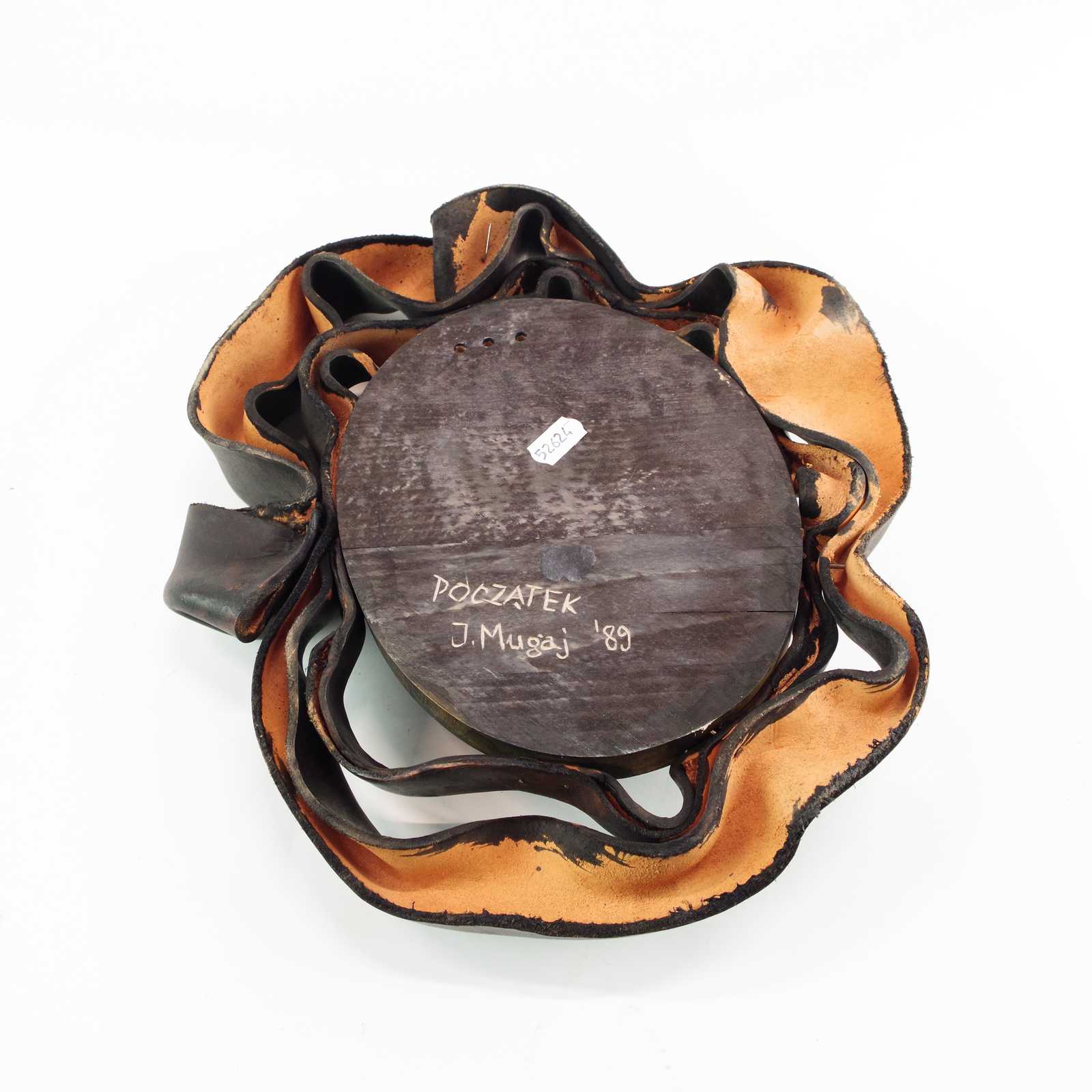 VÄGGDEKORATION läder/trä Poczatek J.Mugaj -89 ca 30*27 cm