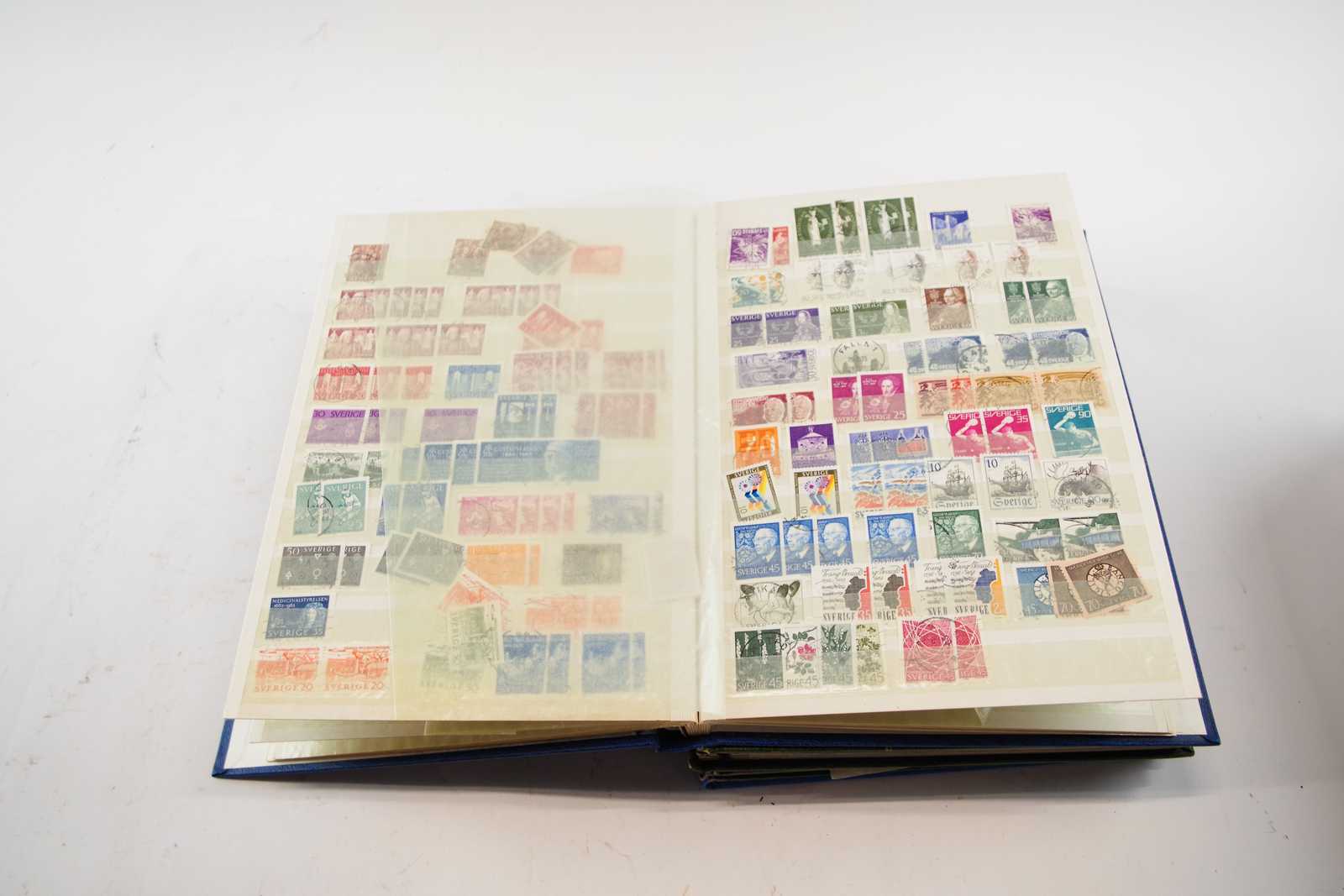 FRIMÄRKSALBUM delvis fyllda, 3 tomma