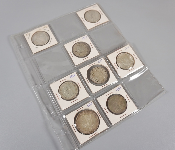 Bilder 8 st svenska silvermynt, 2 kr, 1897-1940