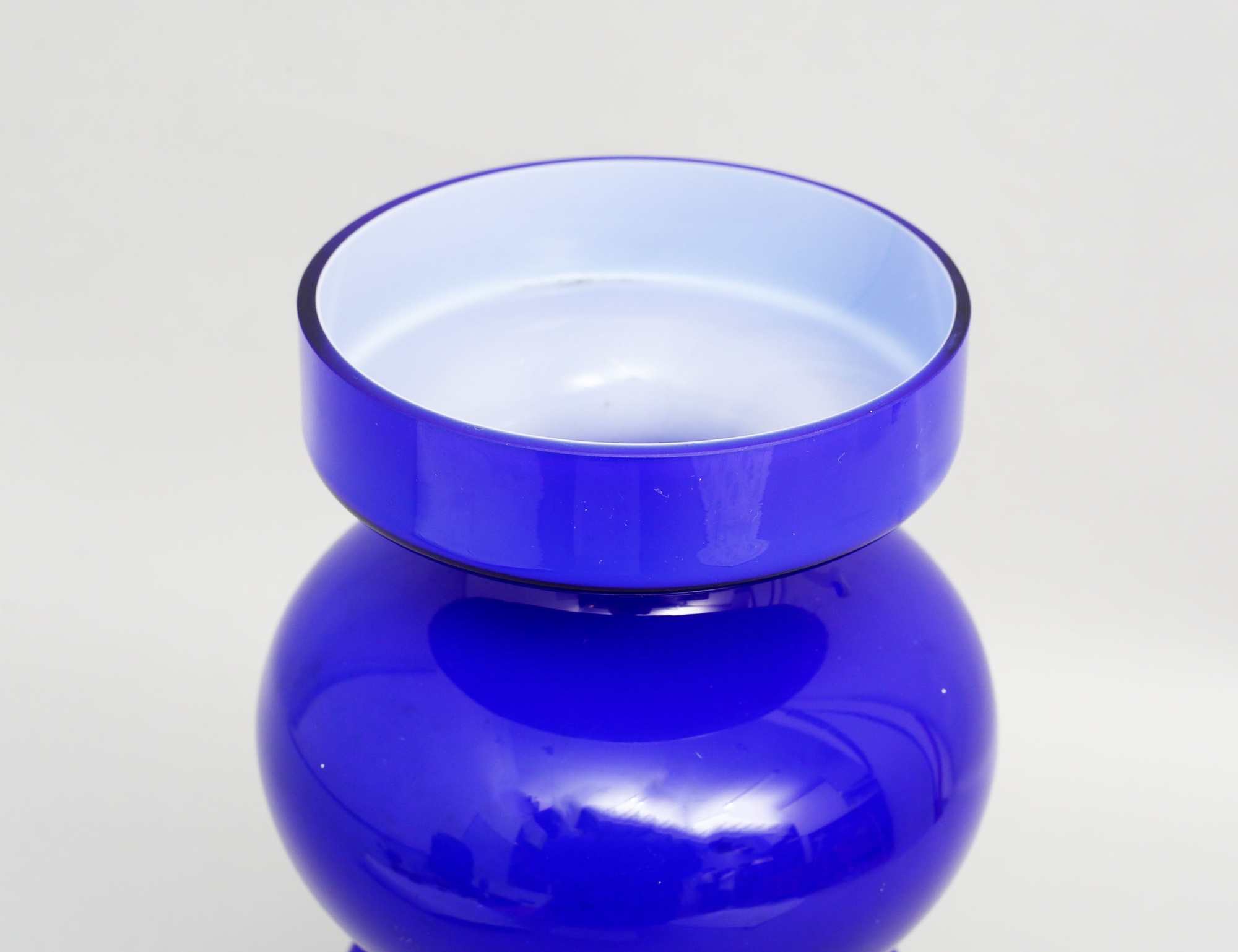 vas blått glas, 1960/70-tal, signerad, höjd 25