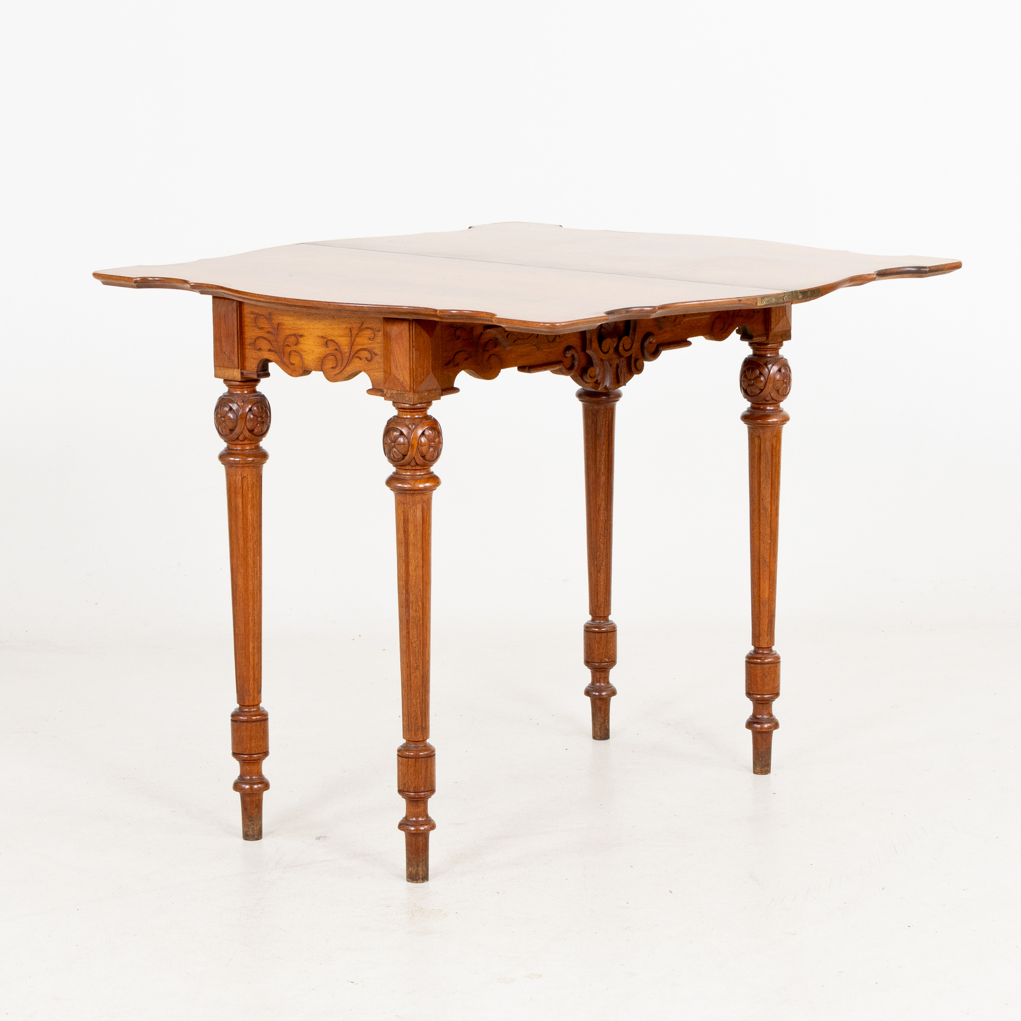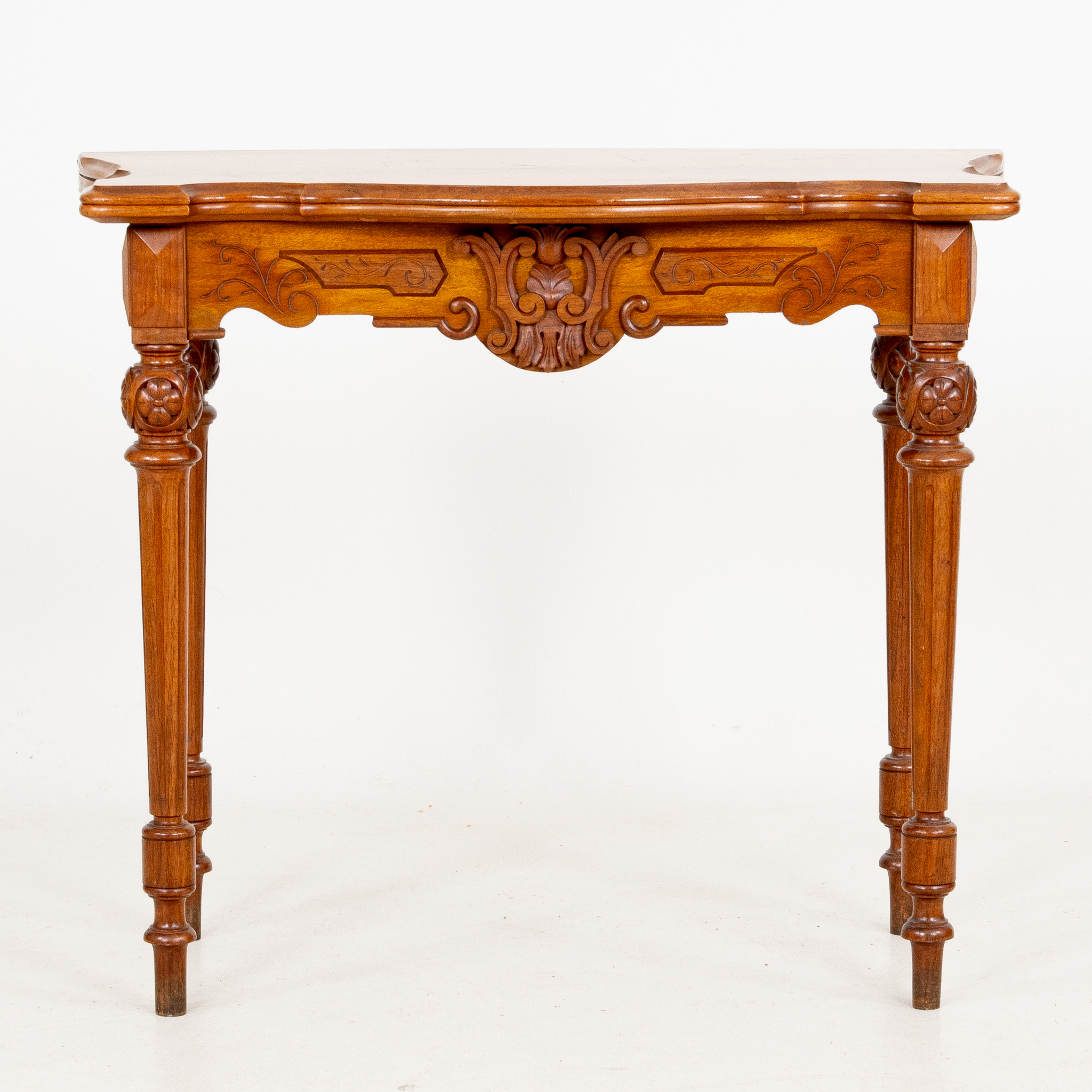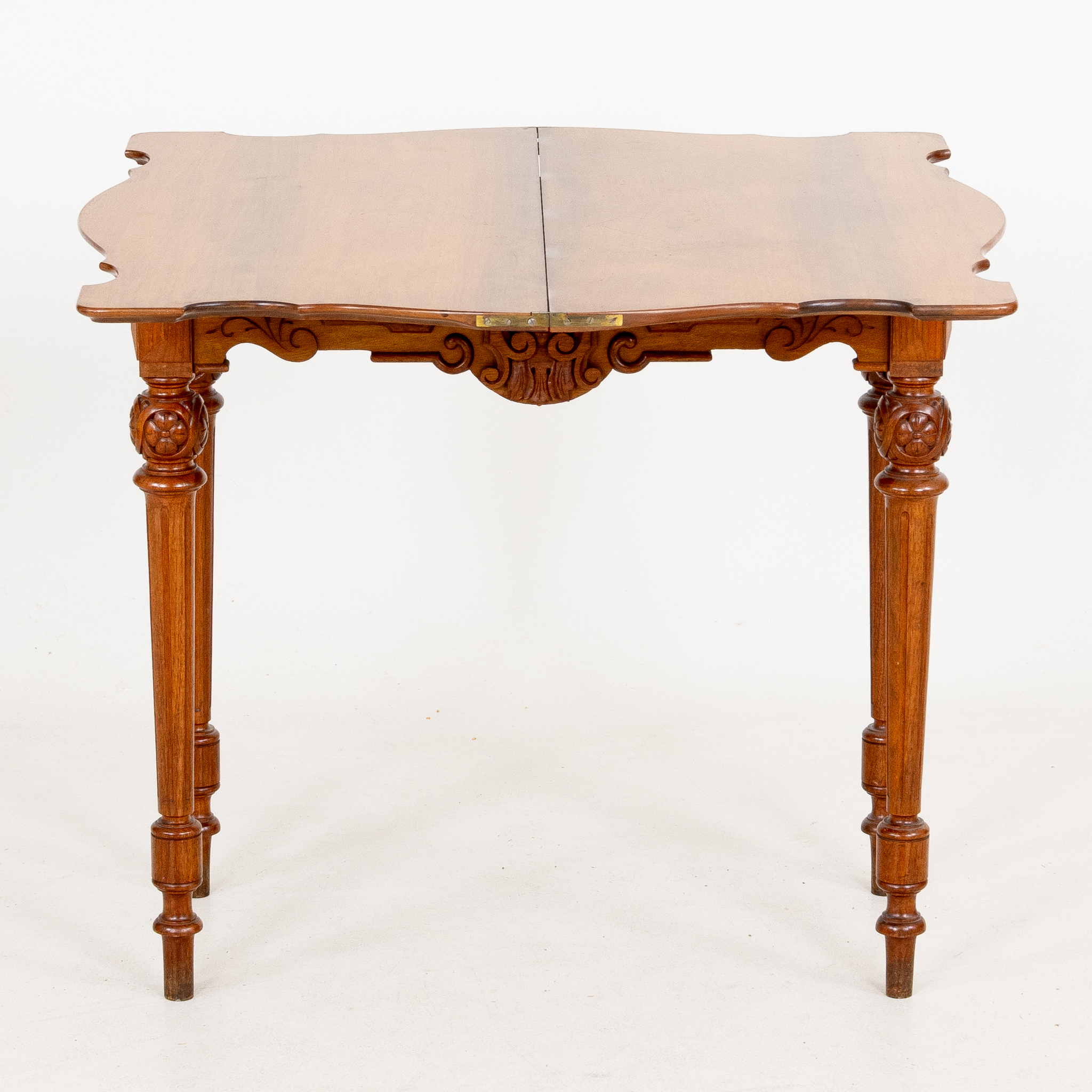 Fanerat med mahogny, profilerad sarg, höjd ca 77, 83 x 42 (84) cm