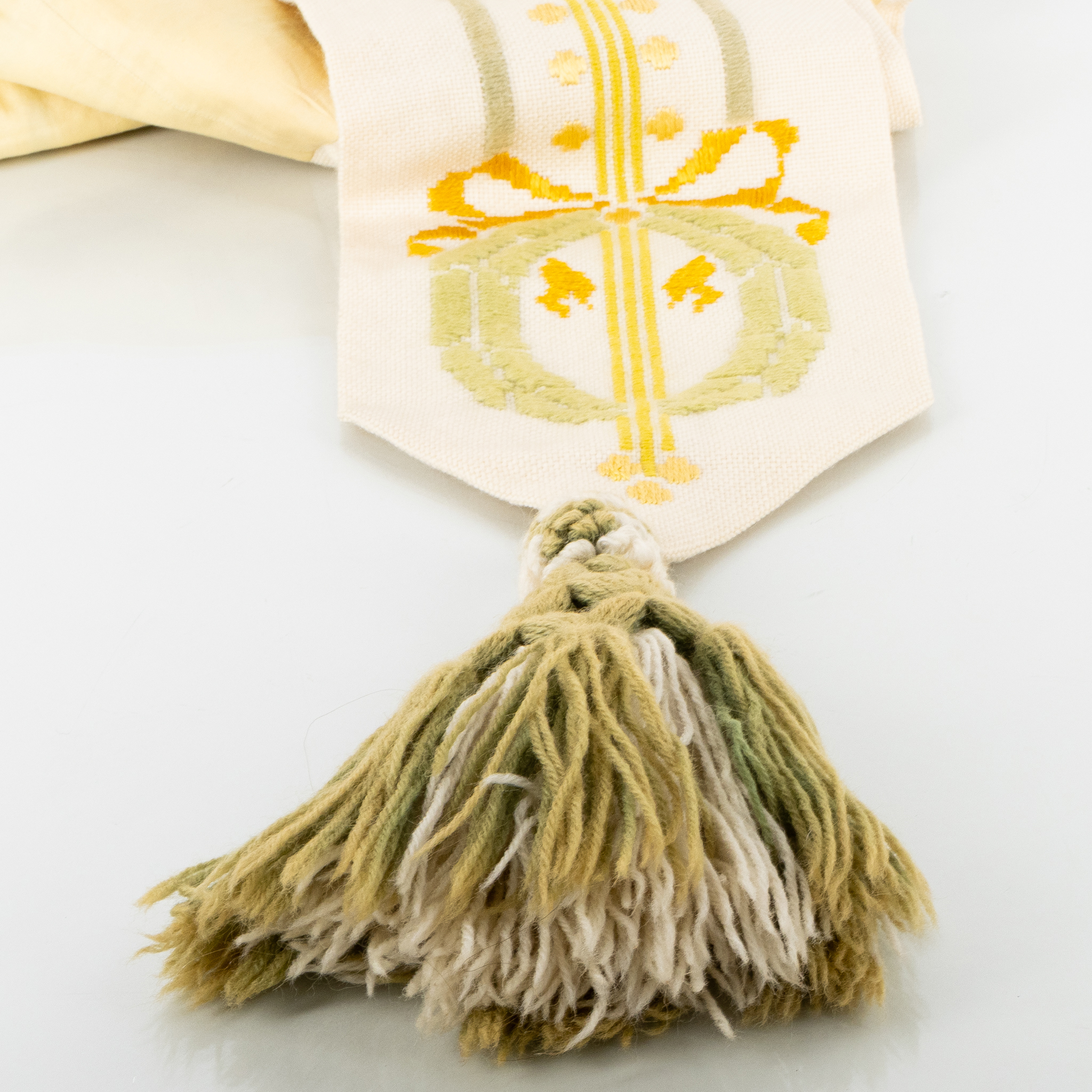 Broderad dekor av girlander, längd inkl tofs ca 190 cm