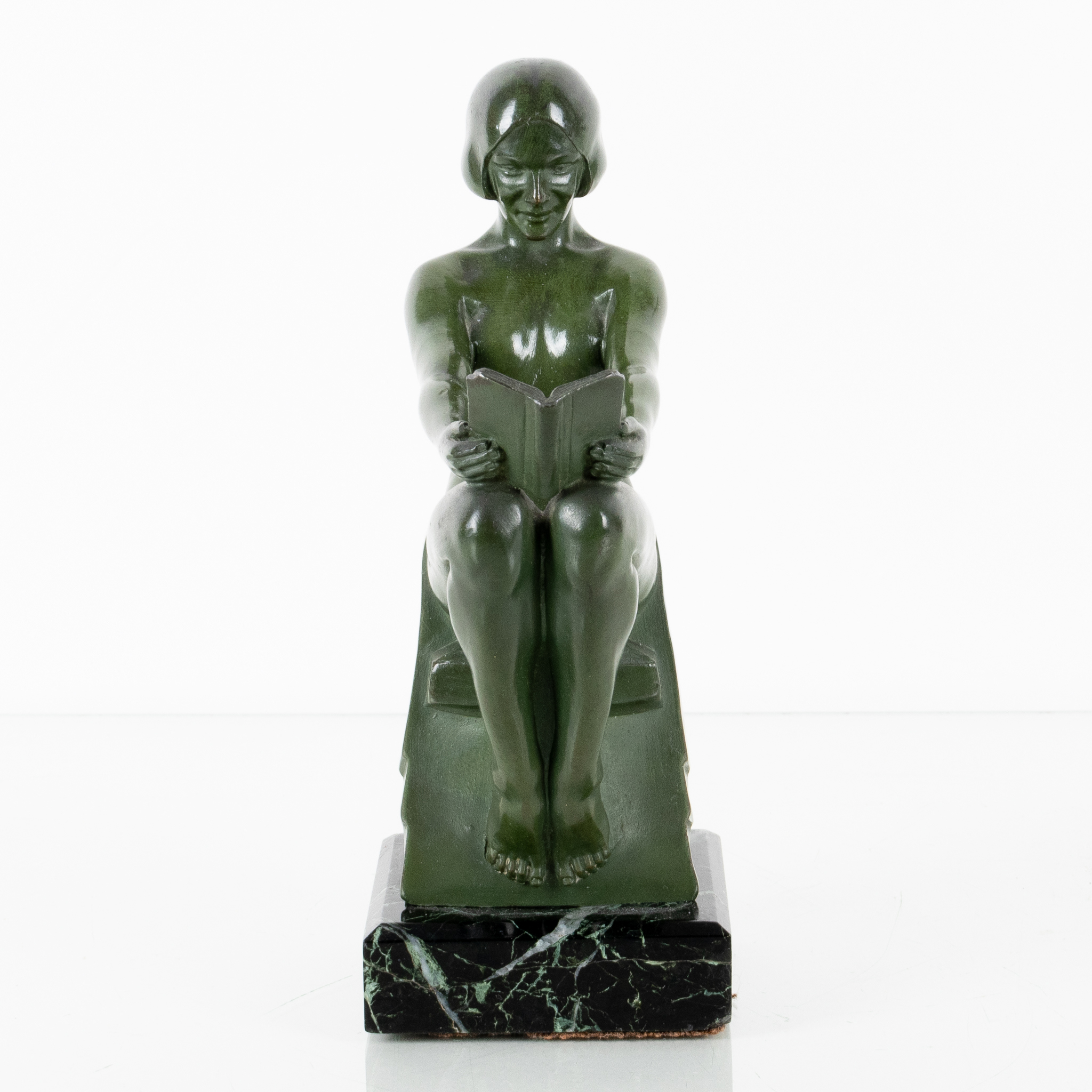 MAX LE VERRIER, efter, bokstöd, patinerad metall, art déco, 1900-talets första hälft
