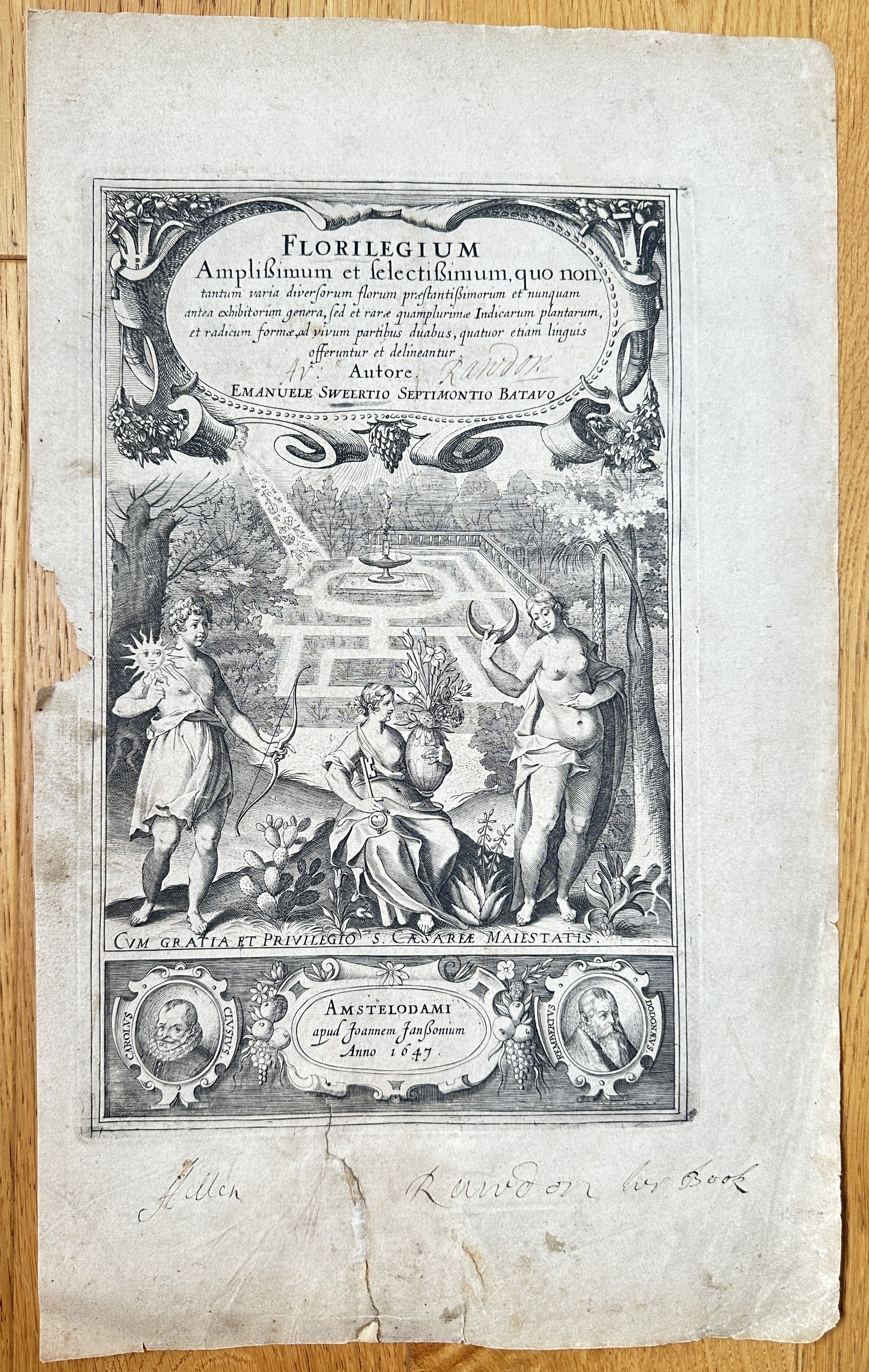 Bilder Emanuel Sweerts (1552–1612) – Allegorical Title Page for Florilegium Amplissimum et Selectissimum (The Most Copious and Select Florilegium) – Engraving (1641)