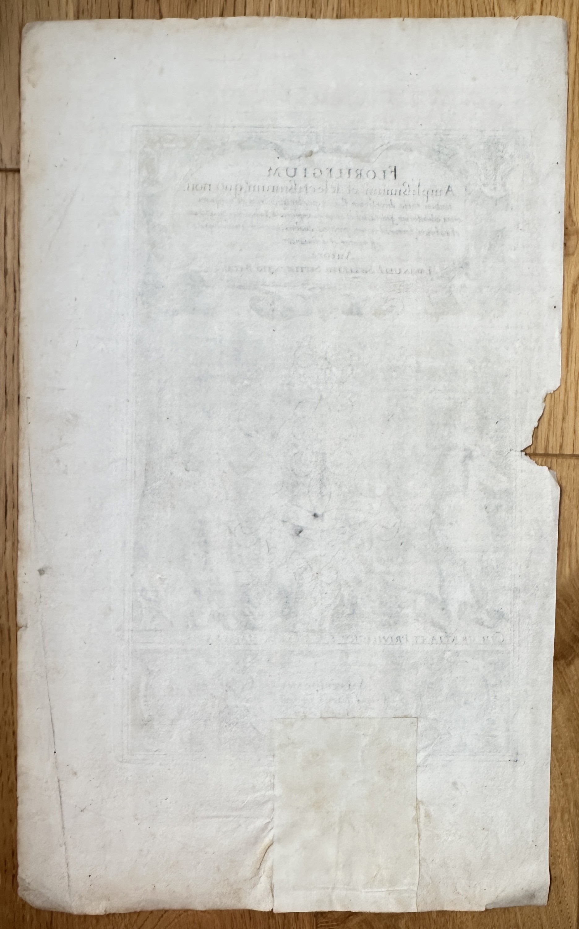 This elaborate allegorical title page is for the famous botanical work, the Florilegium amplissimum et selectissimum. The design is divided into upper and lower registers framed by elaborate cartouches. The central scene shows a formal garden with a fountain and allegorical figures representing the power of the sun and the abundance of nature, with a figure seated amidst floral harvests. The overall composition is a celebration of horticulture and includes portrait roundels of historical figures below the central illustration. The print served as the engraved frontispiece for this commercial catalogue of rare and exotic bulbs and flowers, produced in multiple languages.