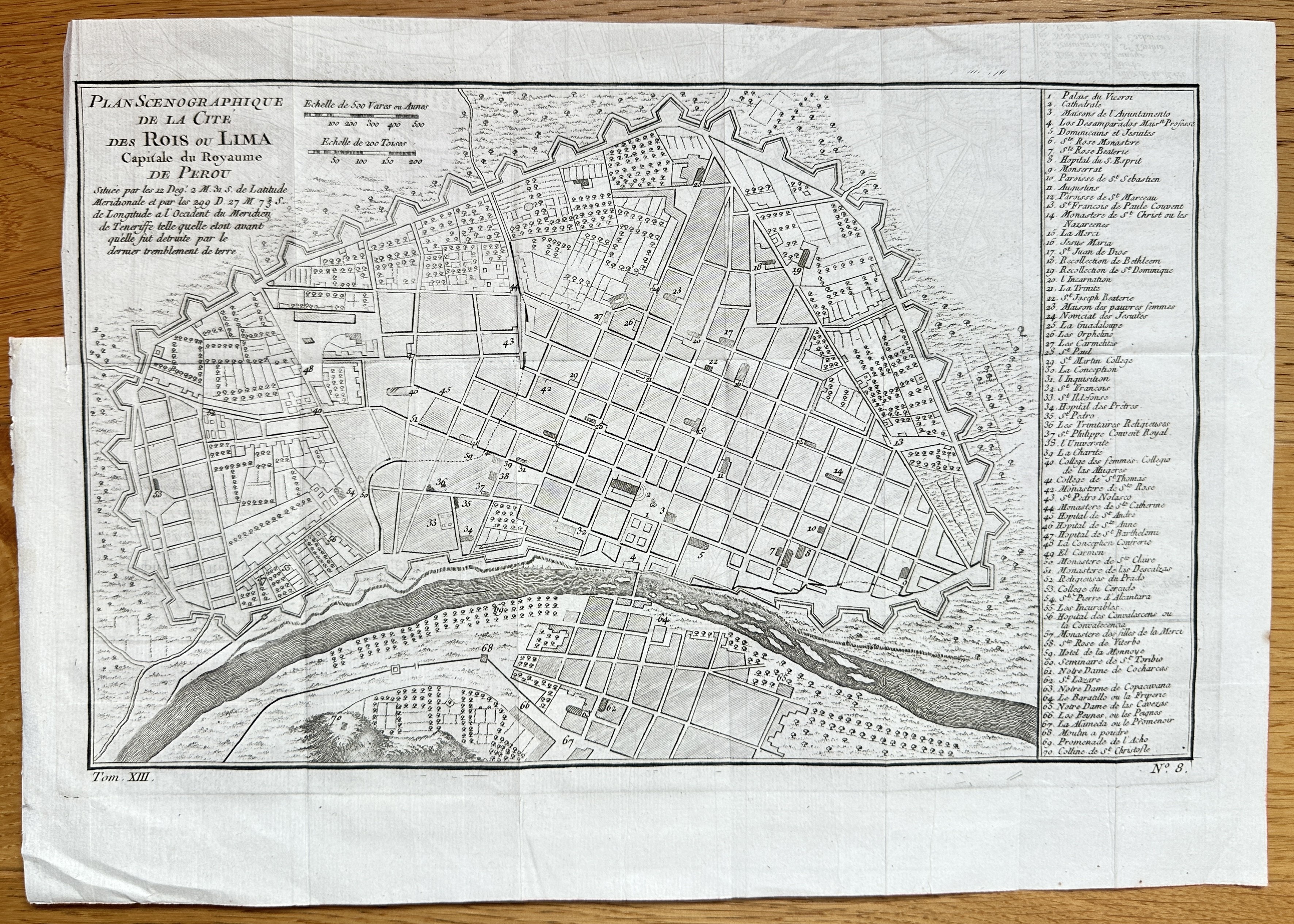 Bilder Jean-Baptiste Bourguignon d'Anville (1697–1782) – Scenographic Plan of the City of Kings or Lima, Capital of the Kingdom of Peru – Copper Engraving (Circa 1756)