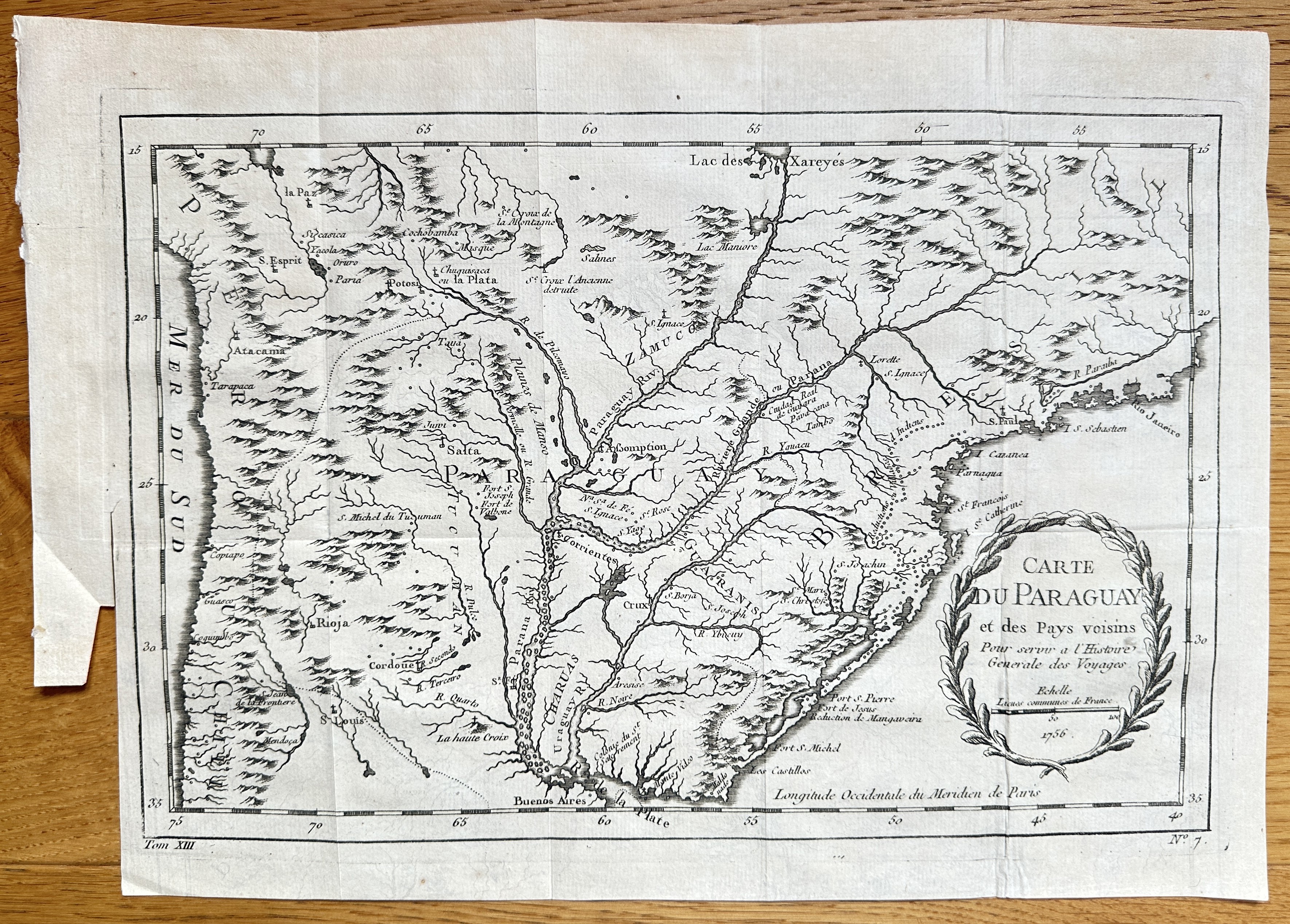 Bilder Jean-Baptiste Bourguignon d'Anville (1697–1782) – Map of Paraguay and Neighboring Countries – Copper Engraving (Circa 1756)