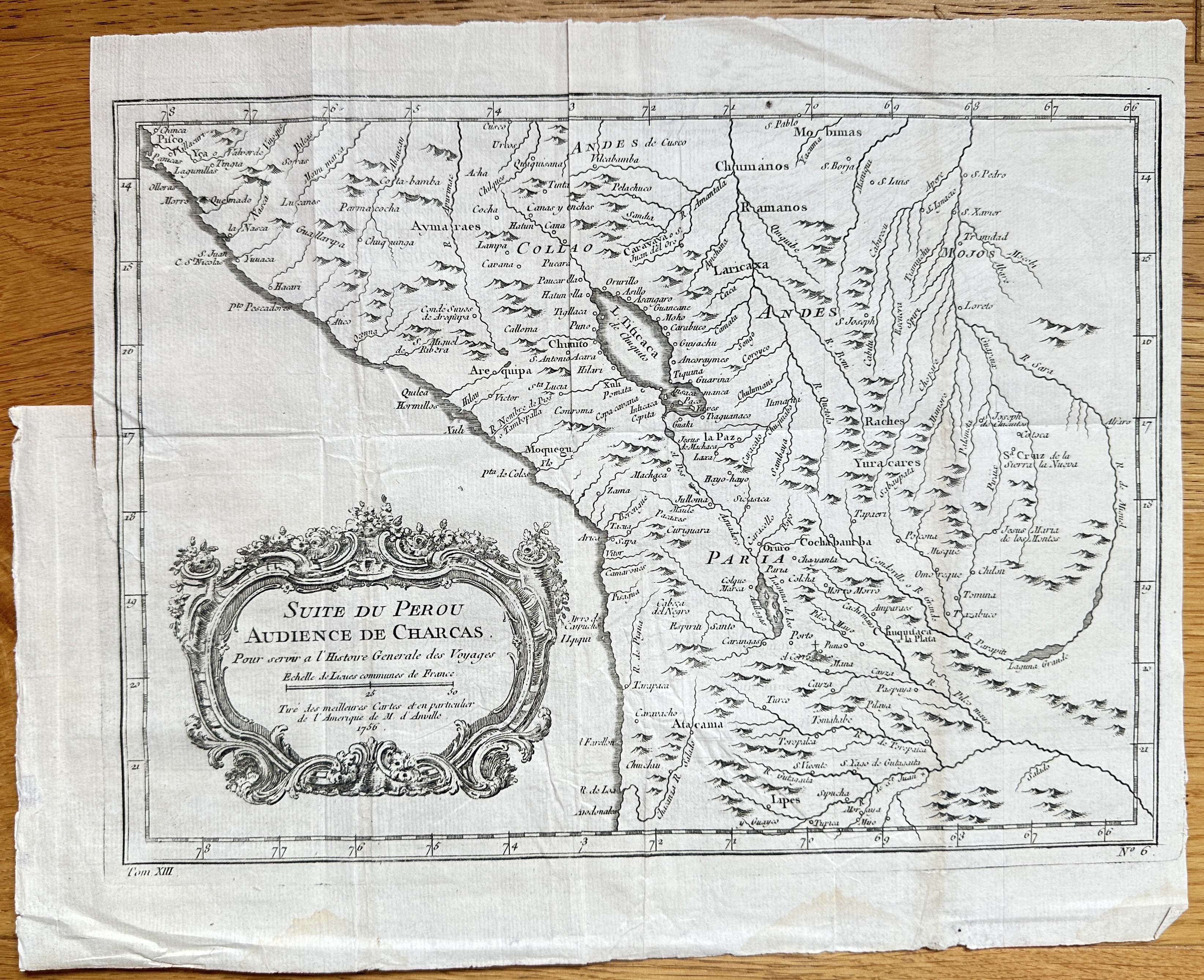 Bilder Jean-Baptiste Bourguignon d'Anville (1697–1782) – Continuation of Peru, Audience of Charcas – Copper Engraving (Circa 1756)