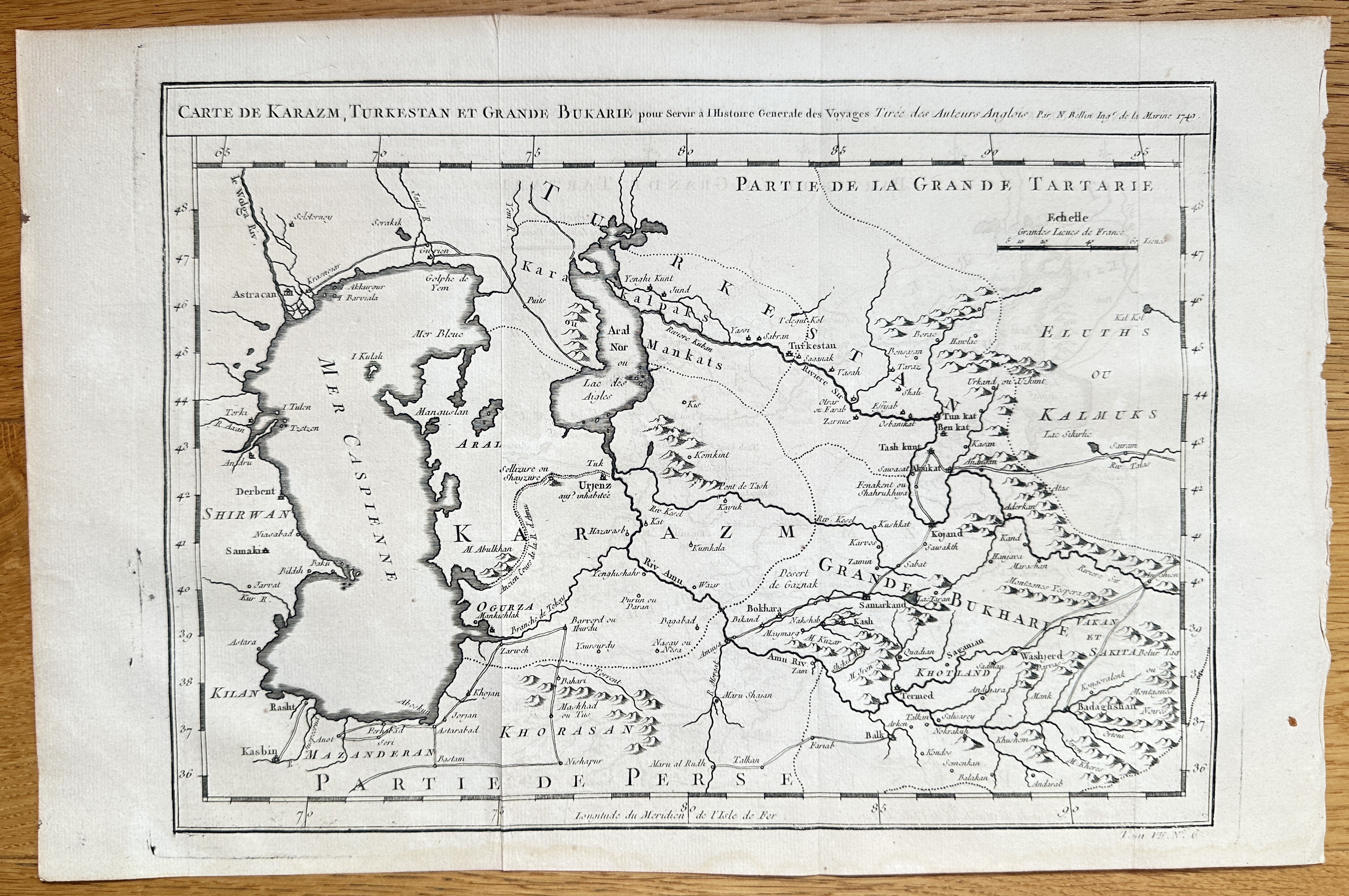 Bilder Jacques-Nicolas Bellin (1703–1772) – Map of Khwarezm, Turkestan, and Great Bukhara – Copper Engraving (Circa 1749)