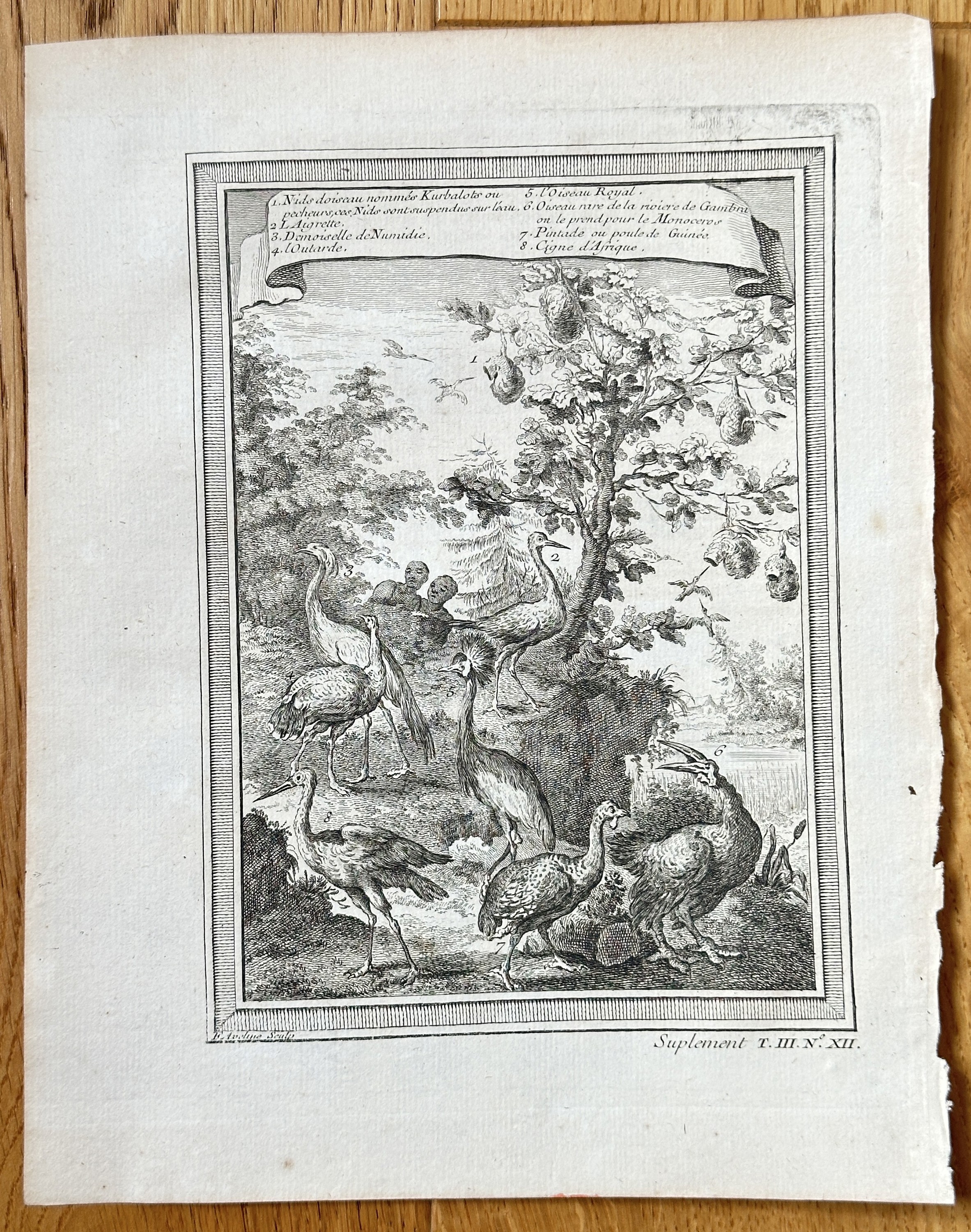 Bilder Antoine-François Prévost (1697–1763) – Guinea Birds, Including the Royal Bird and Swan of Guinea – Engraving (Circa 1747)