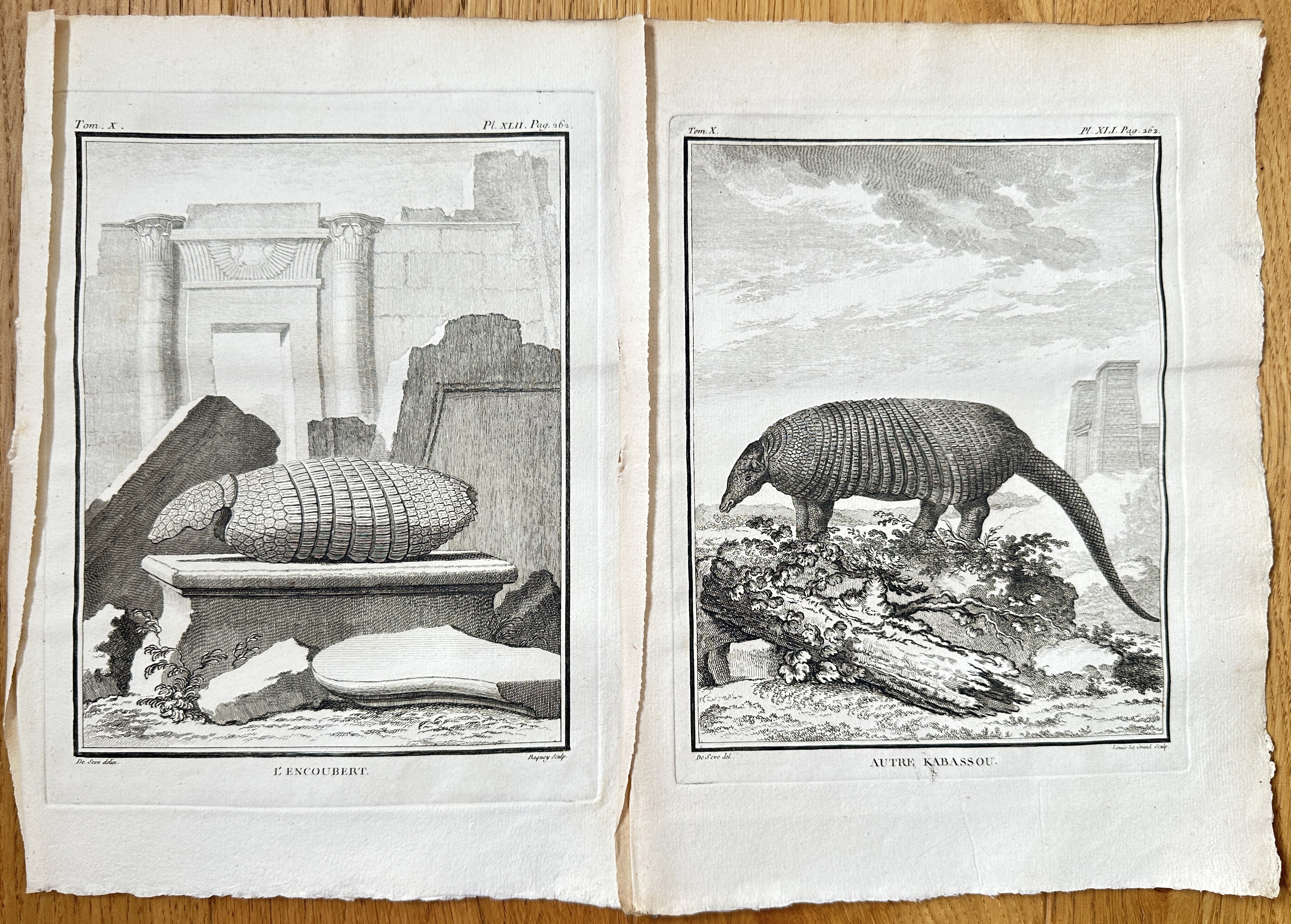 Bilder Georges-Louis Leclerc, Comte de Buffon (1707–1788) – Set of 2: The Encoubert Armadillo and The Cabassou Armadillo – Engraving (Circa 1755)