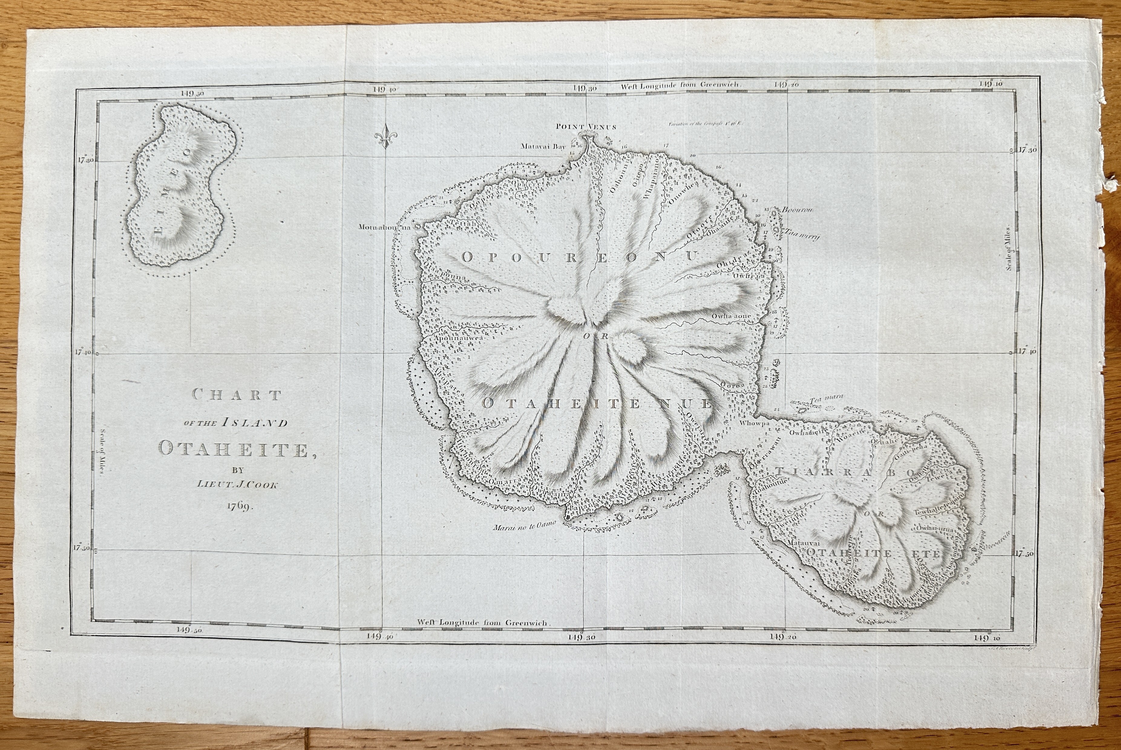 Bilder John Hawkesworth (1715–1773) – Chart of the Island Otaheite, Surveyed by Lieutenant J. Cook in 1769 – Copper Engraving (1773)