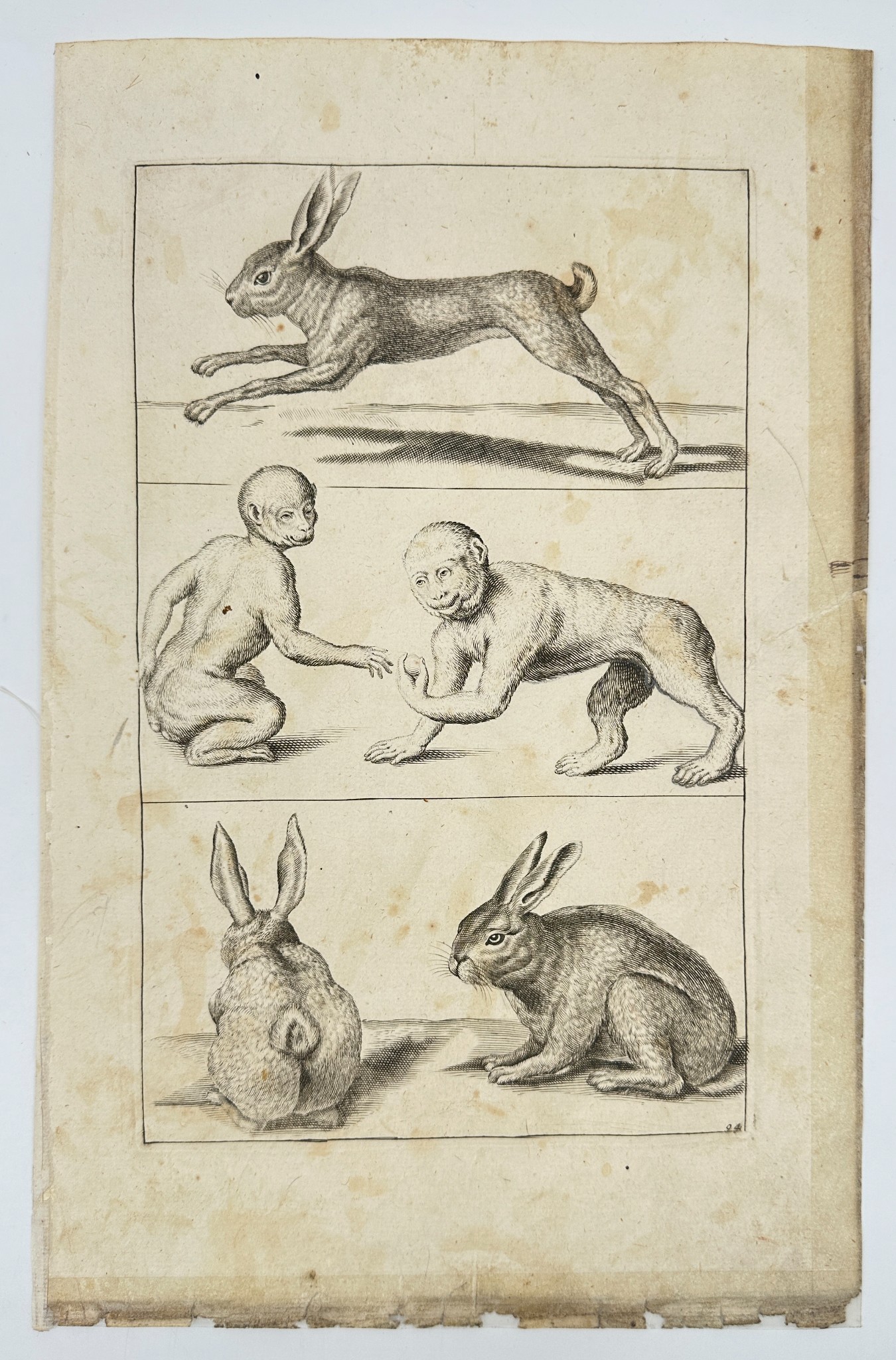 Bilder Frederick de Wit – Studies of Hares and Comparative Anatomy – Copperplate Engraving