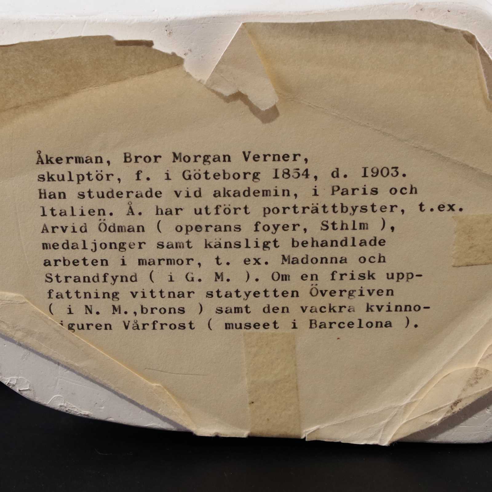 SKULPTUR gips. Verner Åkerman, "Perlan". H:28cm.