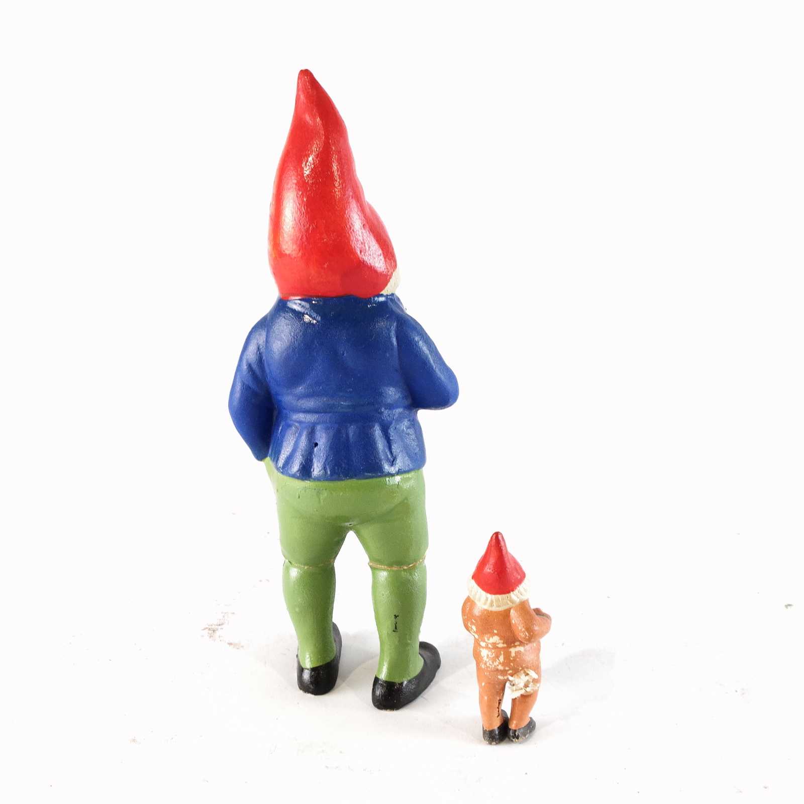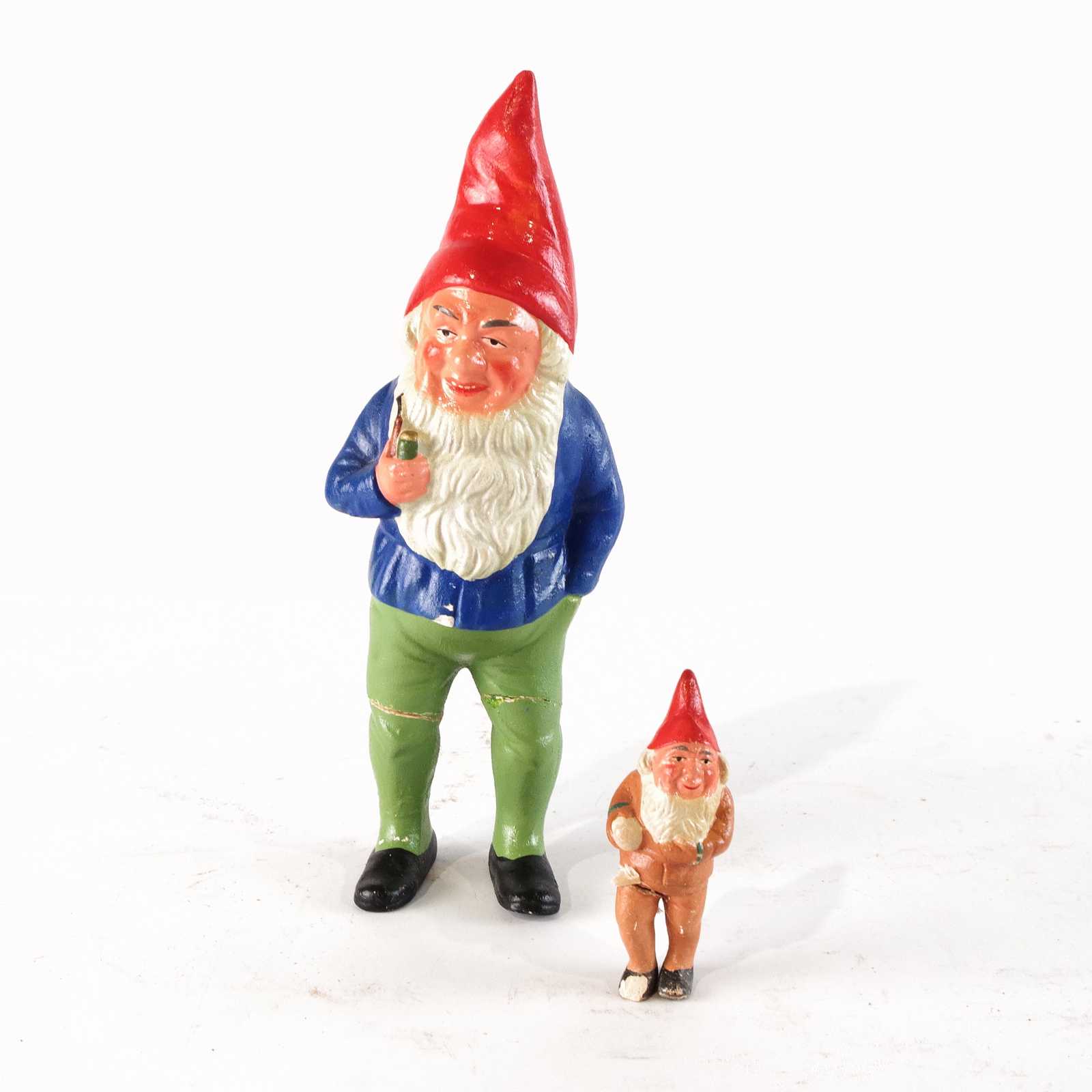 Bilder TOMTAR 2st (skador, limmad) + VAS slipad dekor. (nagg). H:25cm största tomte.