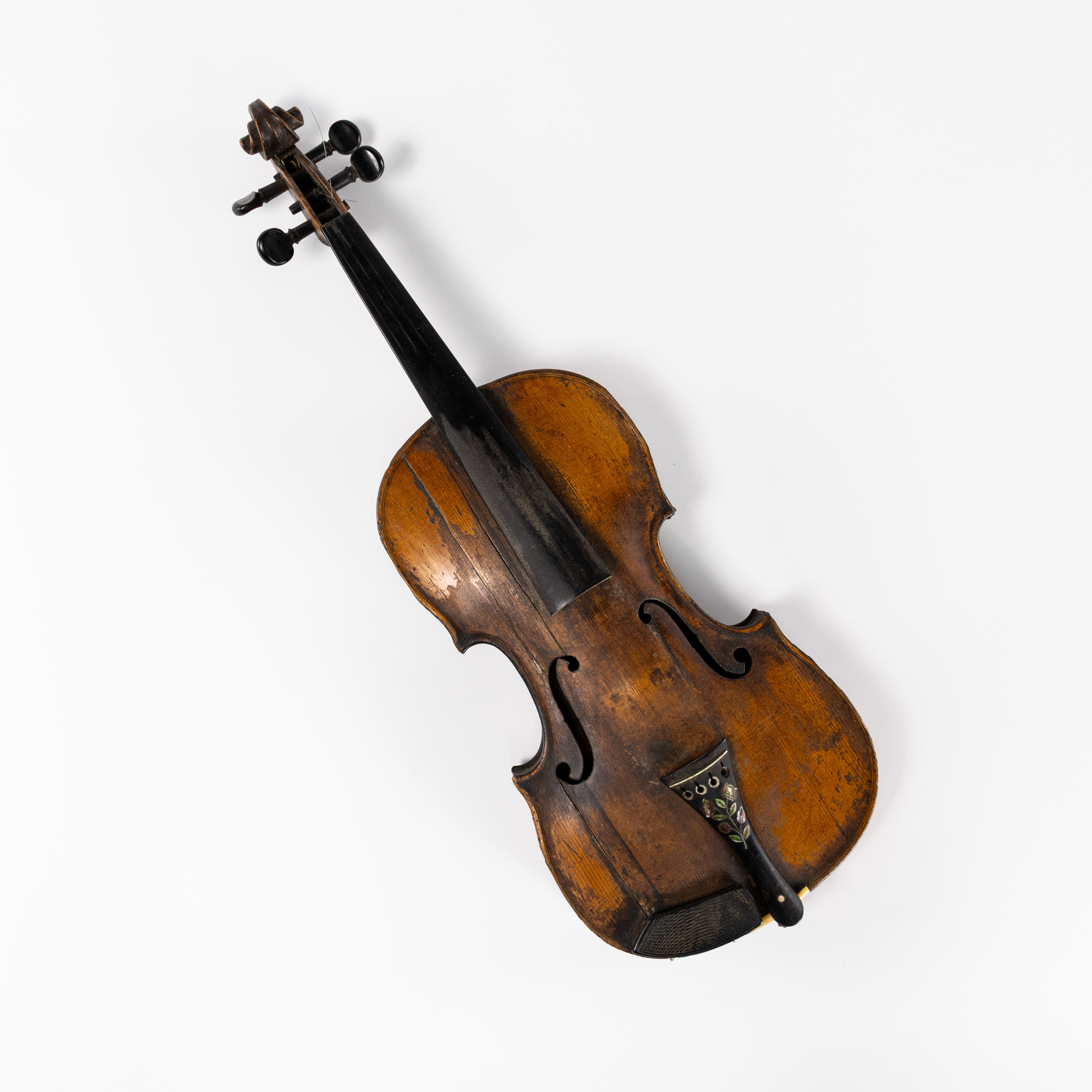 Fioler, 2 st, renoveringsobjekt, den äldre 1800-tal, invändigt märkt "Reparerad år 1906 af Alfred Schill