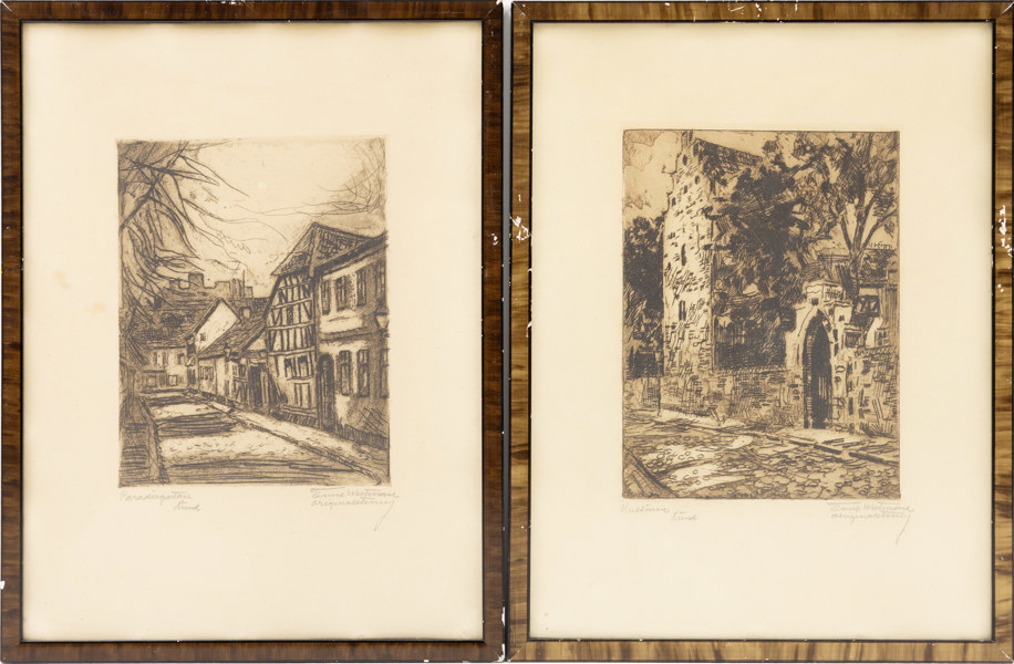 Bilder Emil Westman, etsningar, 2 st, Lundamotiv, 32 x 42 cm