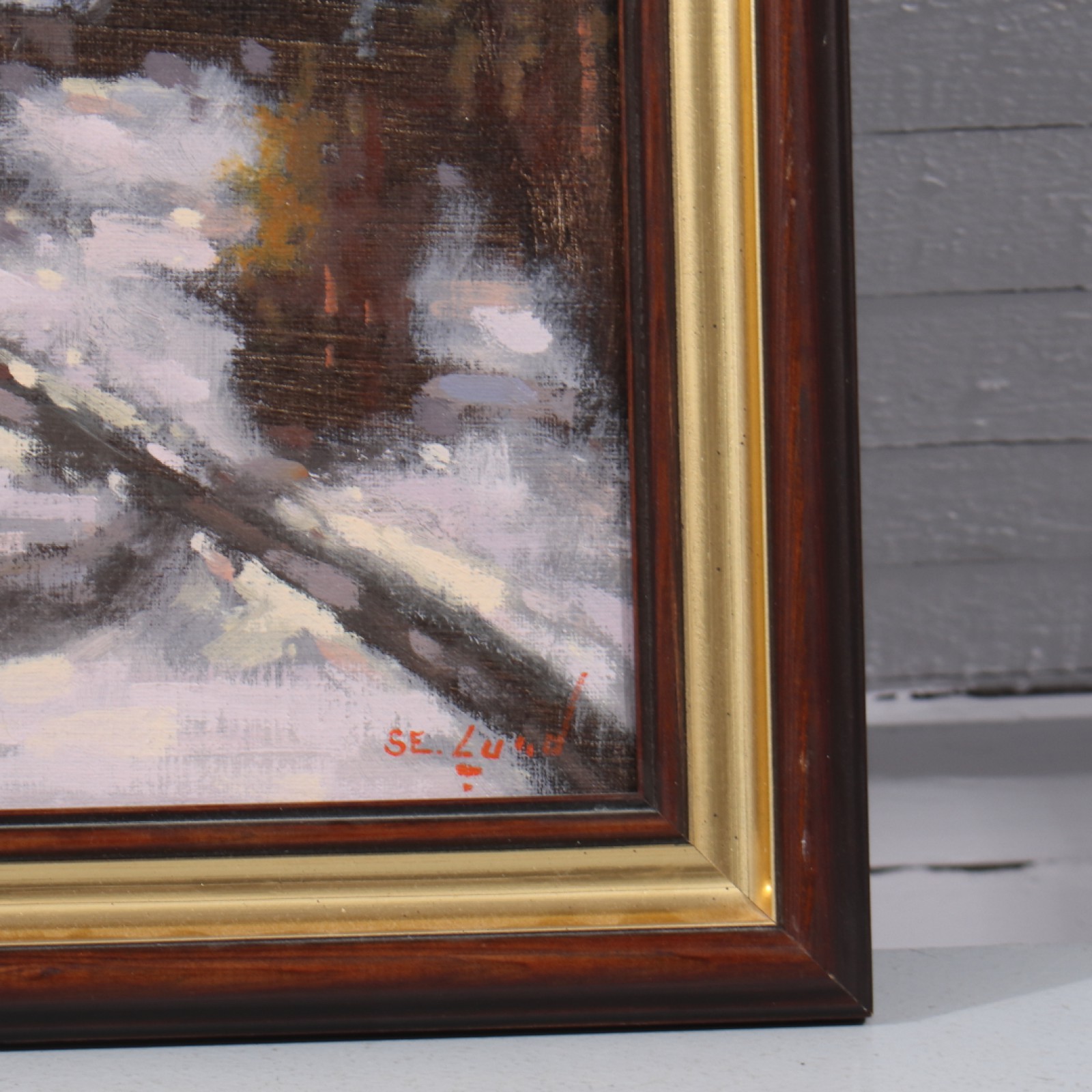 Olja på duk, "Naturscen med torp", ram 48x56 cm, bild 37x45 cm. (vån3)