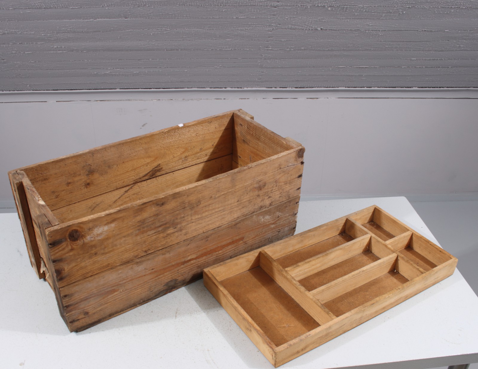 Bilder ÄLDRE TRÄLÅDA OCH BESTICK/VERKTYGSLÅDA
