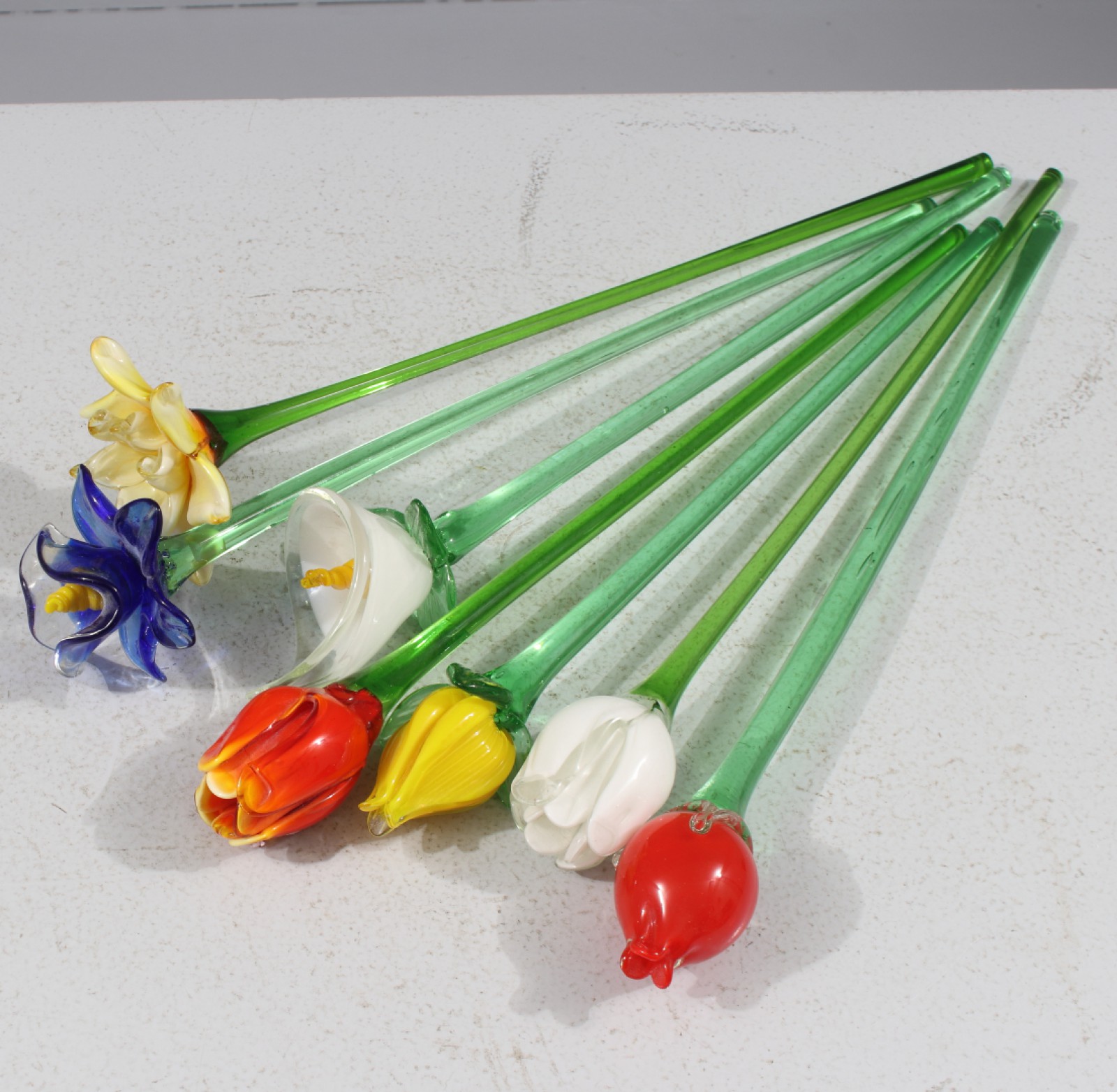 7 stycken, konstglas, längd 48-51 cm. (vån3)
