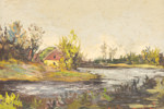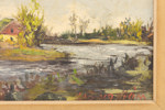 Karin Borgström, olja på duk, motiv med hus vid å, signerad, 42 x 34 cm med ram