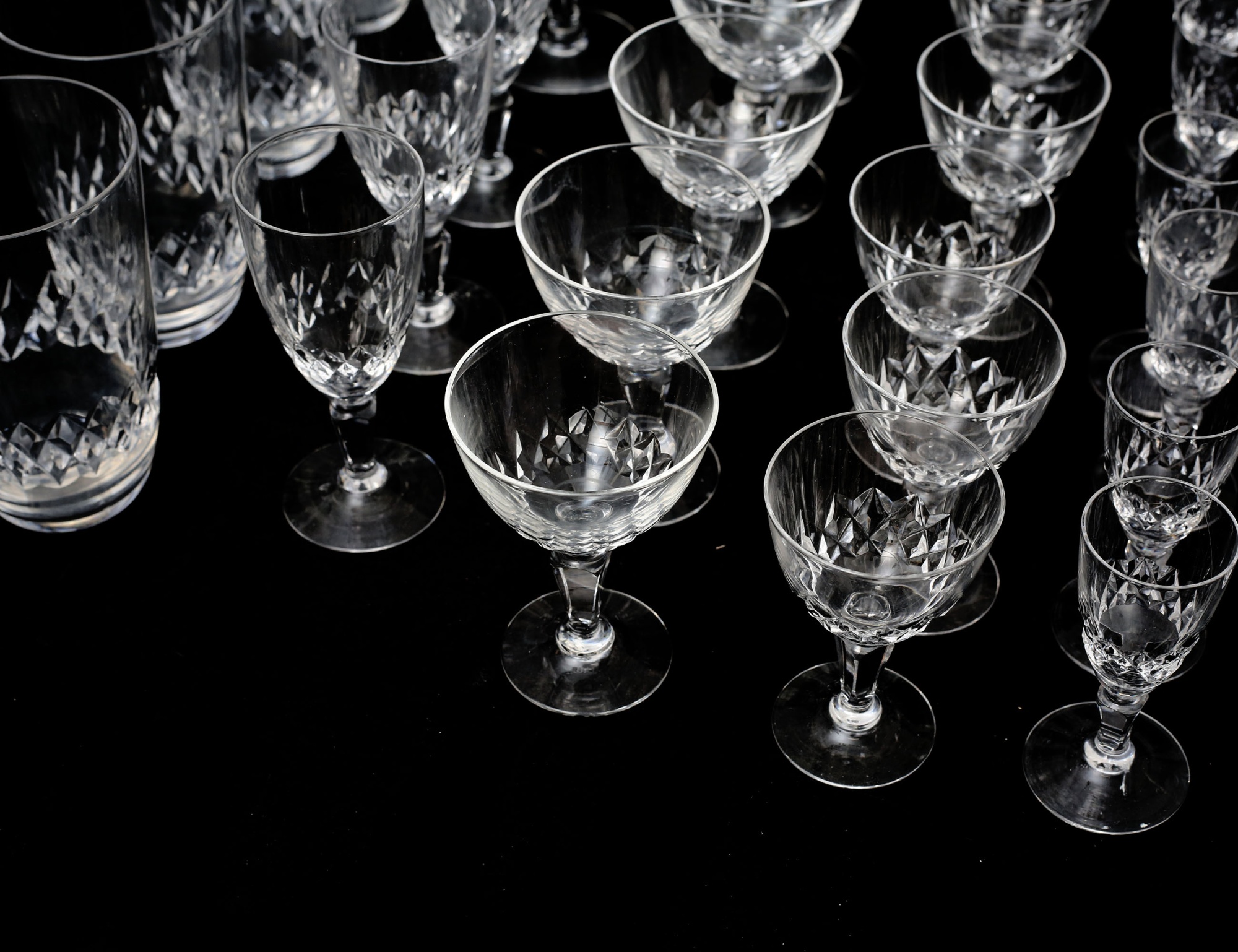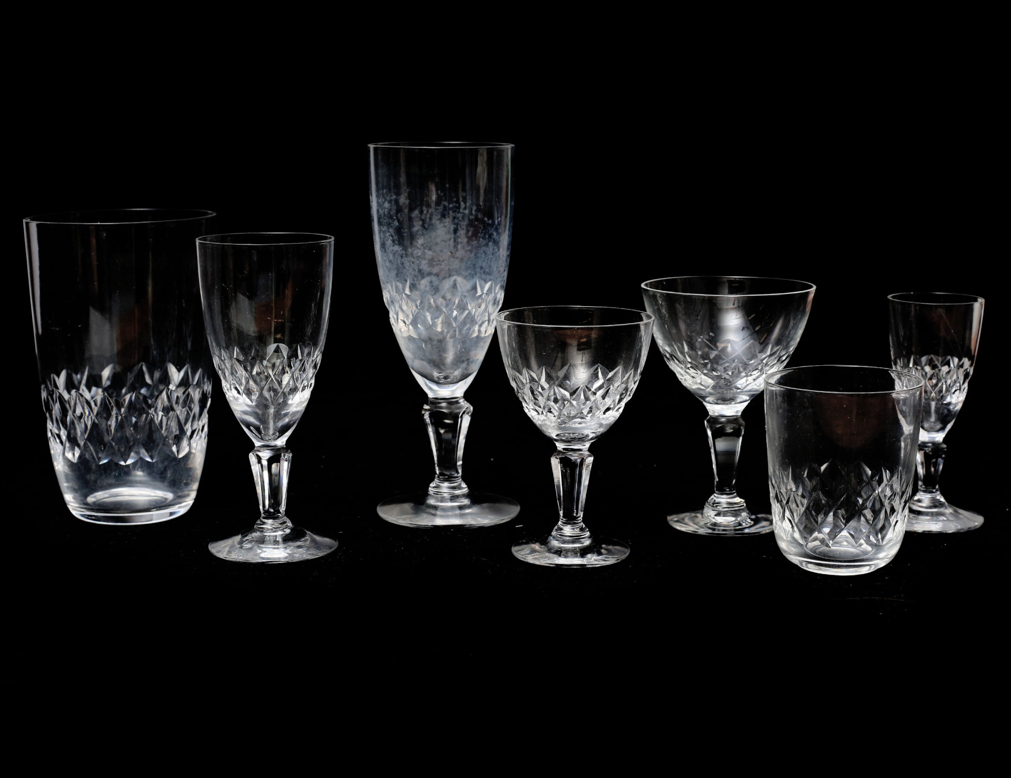 Fritz Kallenberg Kosta, 1 champagne, 3 vitvin, 8 starkvin, 4 drink, 10 selter, 6 portvin samt 7 snaps, höjd 7,5-16