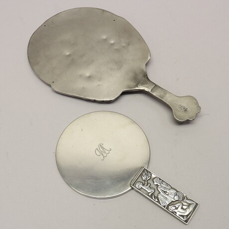 Bilder Handspeglar 2 st tenn, 1900-talets första hälft, höjd 23 och 33 cm