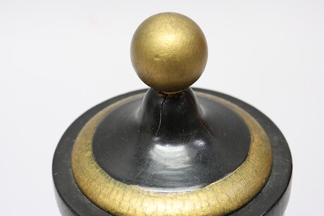Bilder Urna me lock, svärtat trä med bemålad och tryckt dekor, 1800-tal, höjd 24 cm