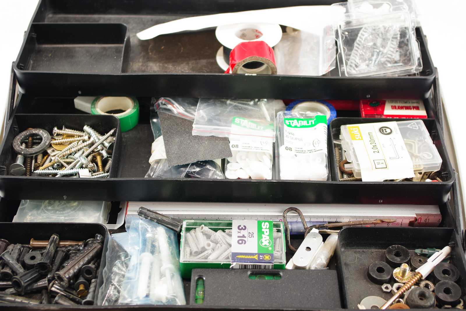 Bilder FISKELÅDA & DIVERSE plugg, tång, fil, tumstock mm