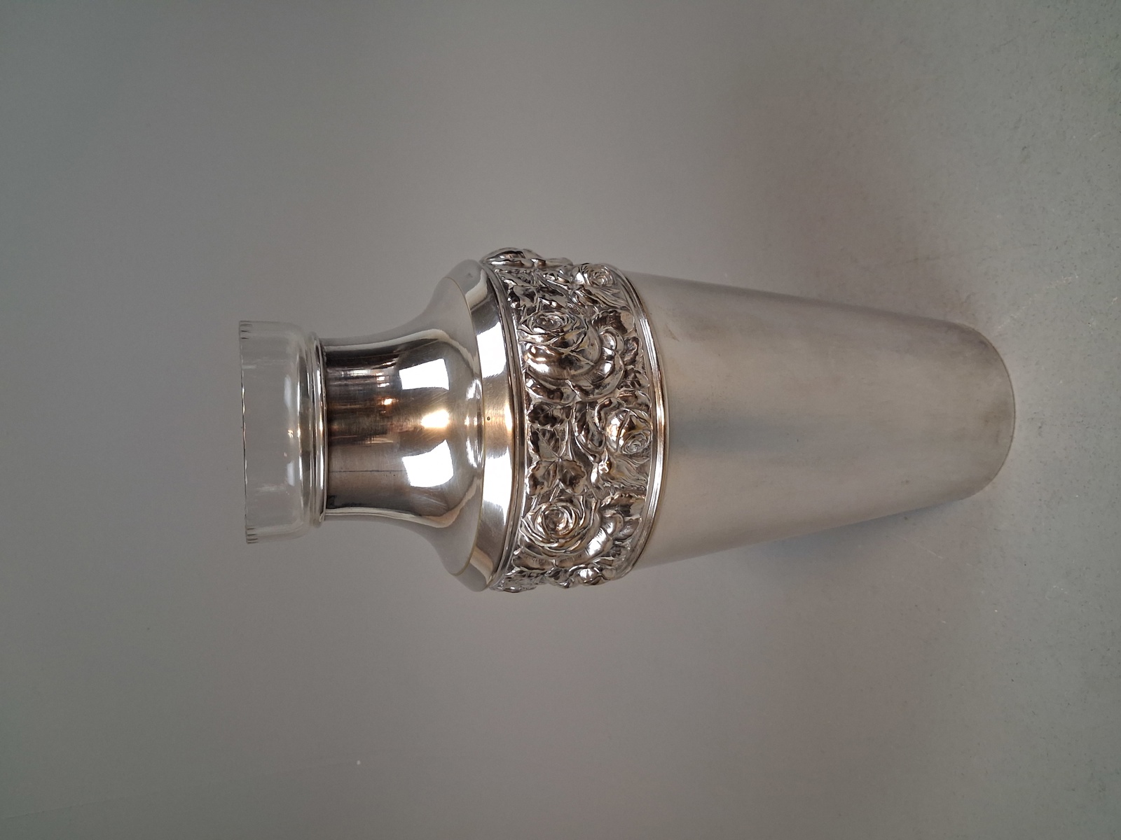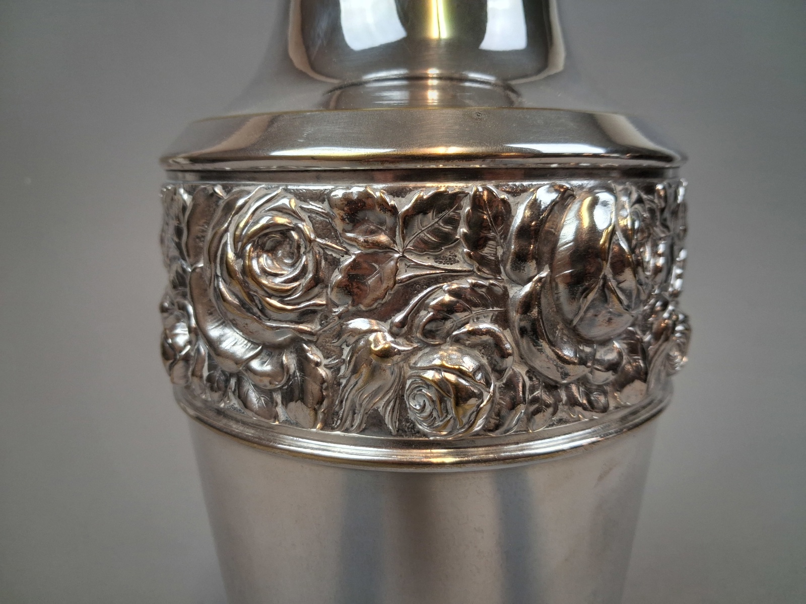 Vas med glasinsats. Jungend, Nysilver, 1900-talets början.