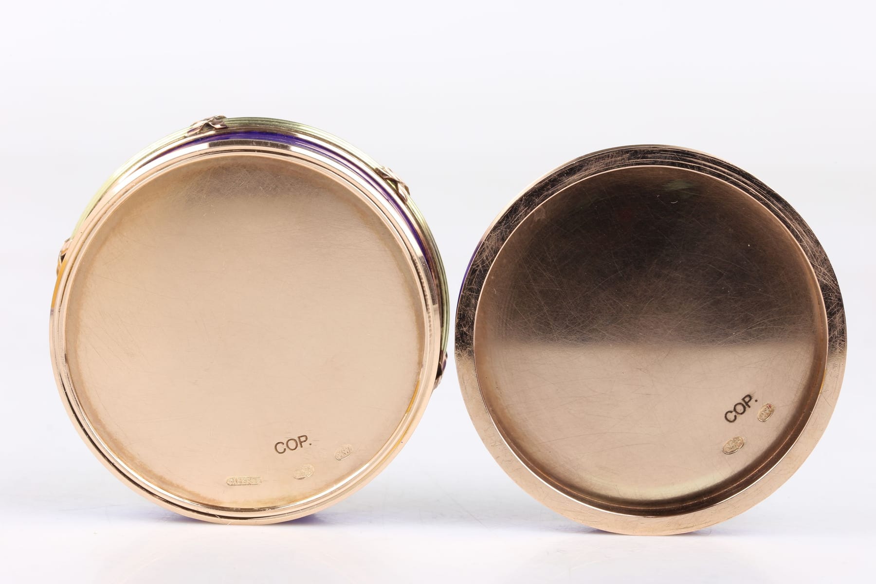 Bilder DOSA, guld, 14 k, ca 107,3 g, dekor i blå emalj och silver, med diamanter, 86 st