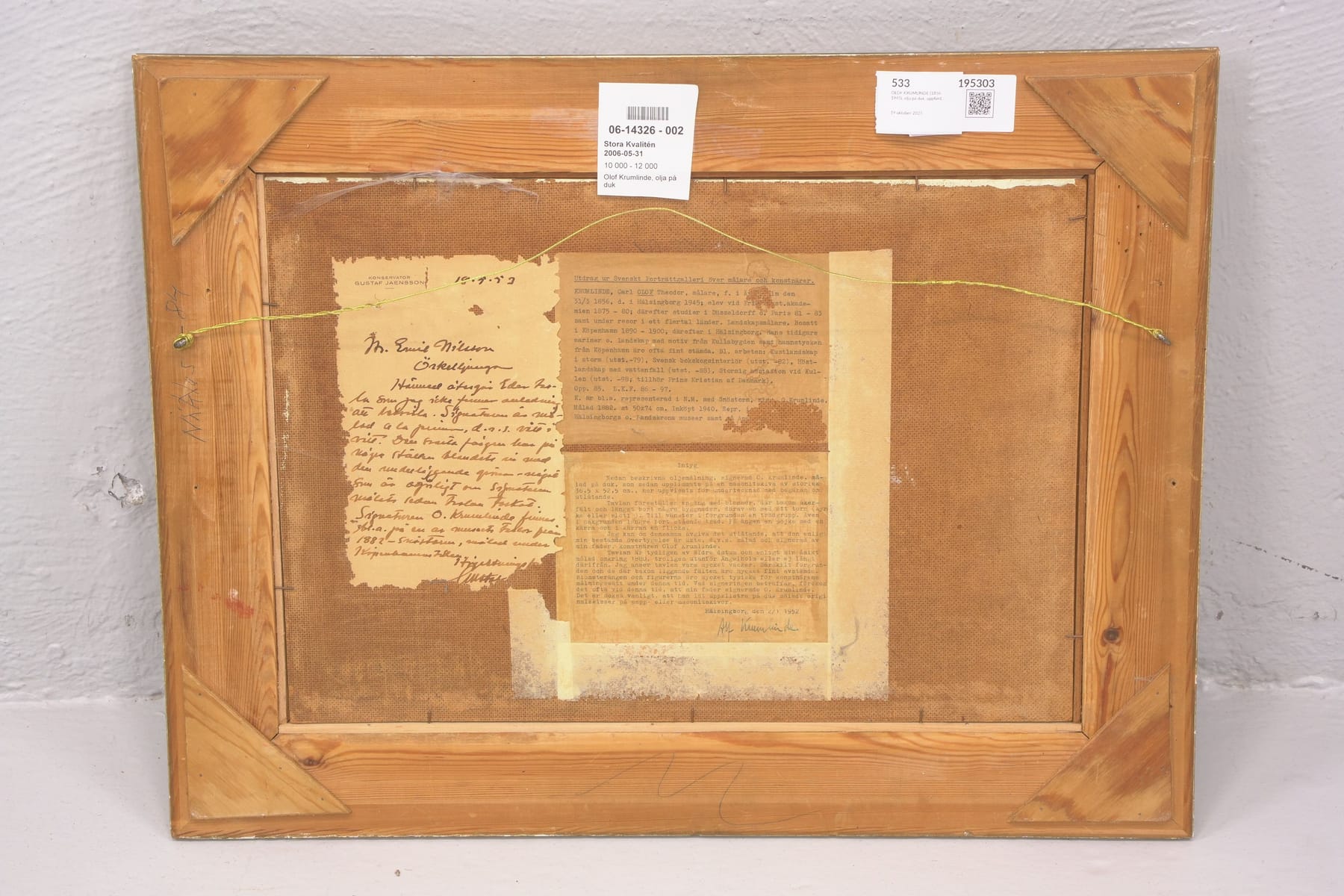 Bilder OLOF KRUMLINDE (1856-1945), olja på duk, uppfordrad på pannå