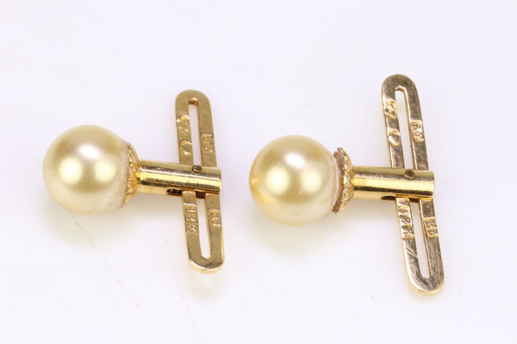 Bilder SKJORTKNAPPAR, ett par, med syntetiska pärlor, guld, 18 k, ca 2,47 g, Joh Petterssons Eftr Juvelerar Ab, Stockholm, 1934