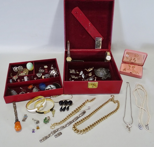 Parti smycke och bijouterier m.m. i smyckeskrin