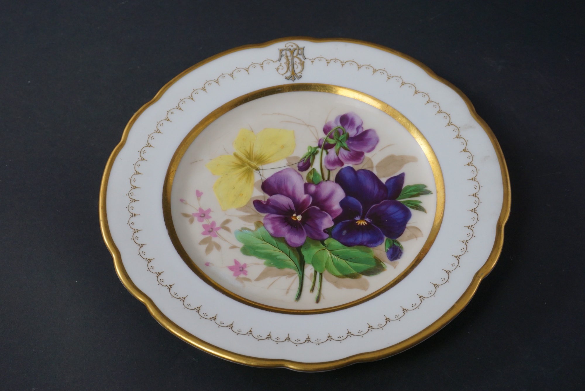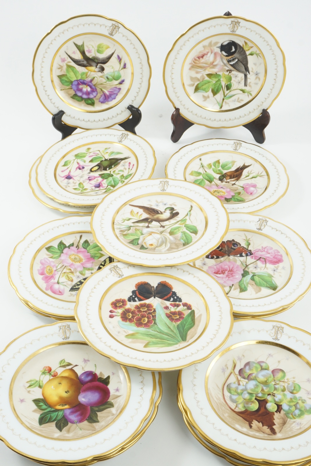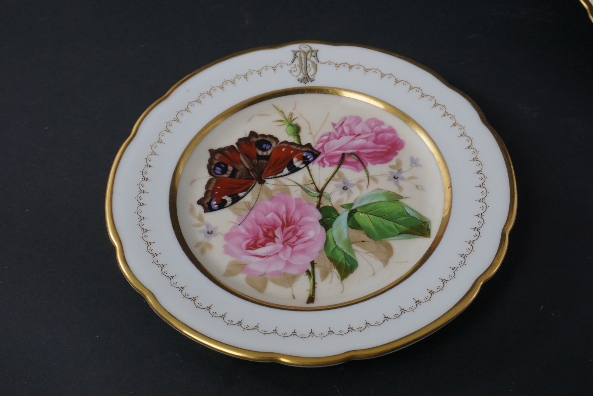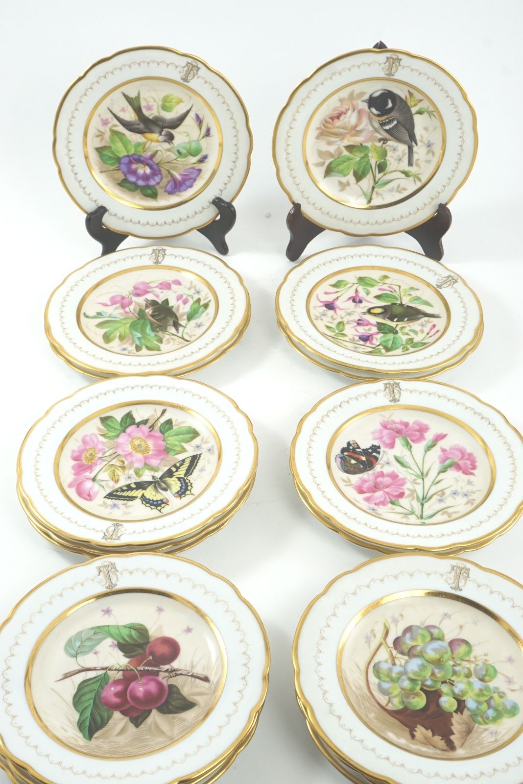 Bilder Handmålade tallrikar 1800-tal, fåglar, fjärilar 17 st