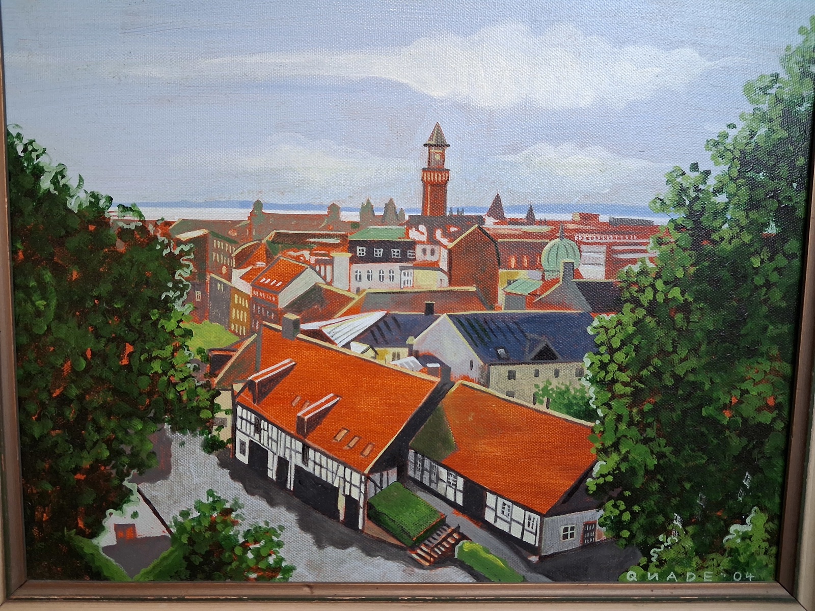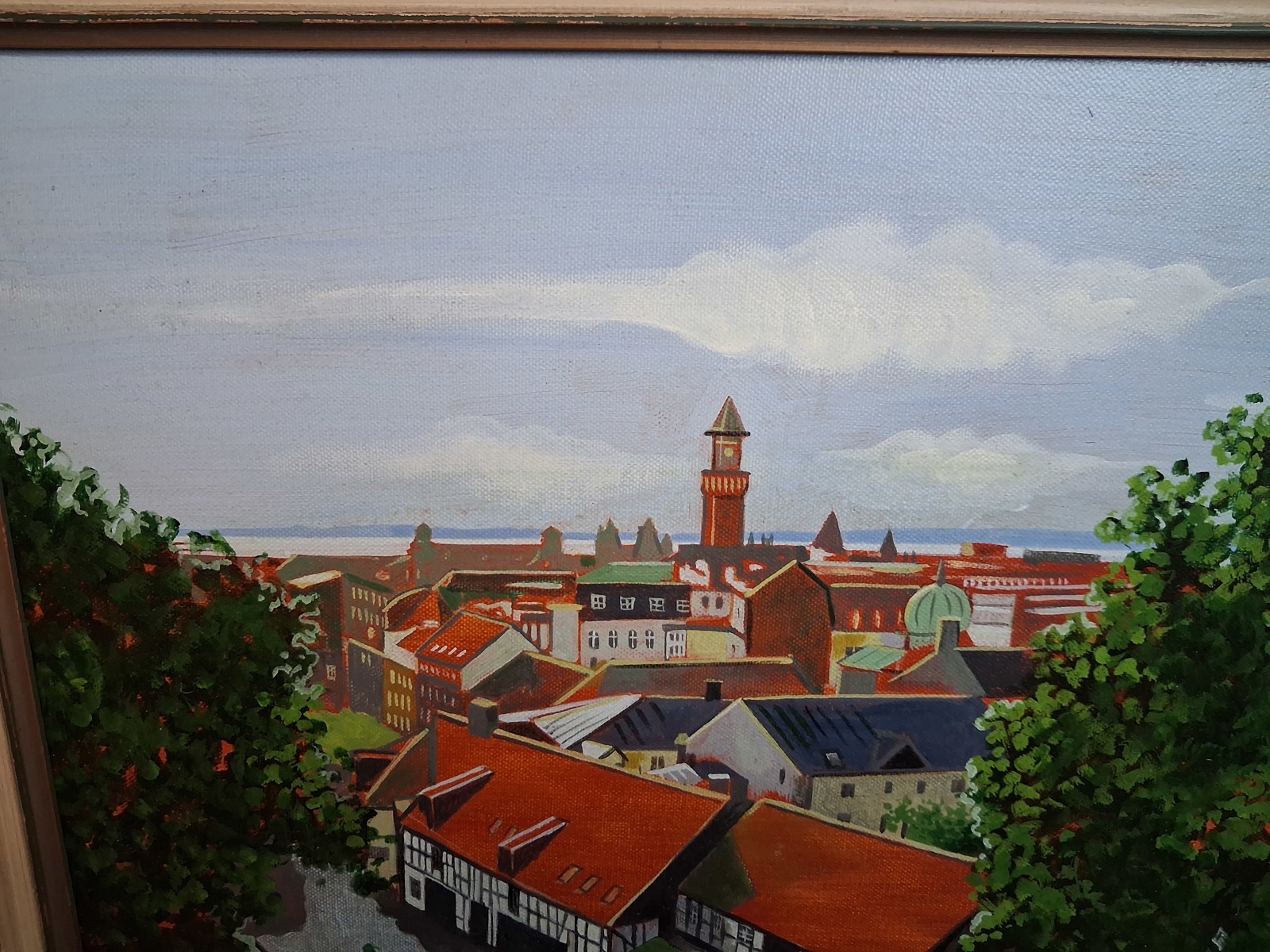 Bilder INGRID QUADE. Olja på duk "Vy över Helsingborg", signerad & daterad-04.