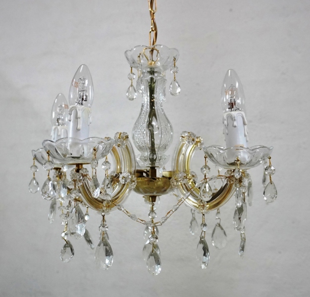 gul metall, glas, prismor, 5 ljuspunkter