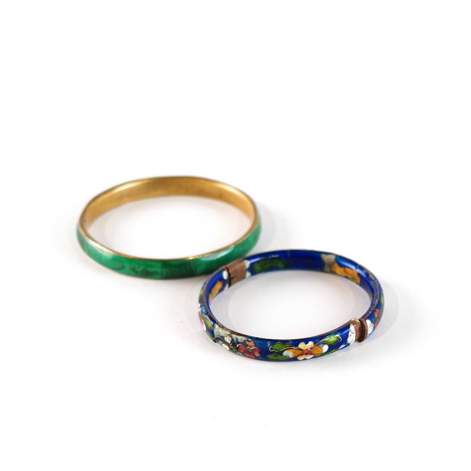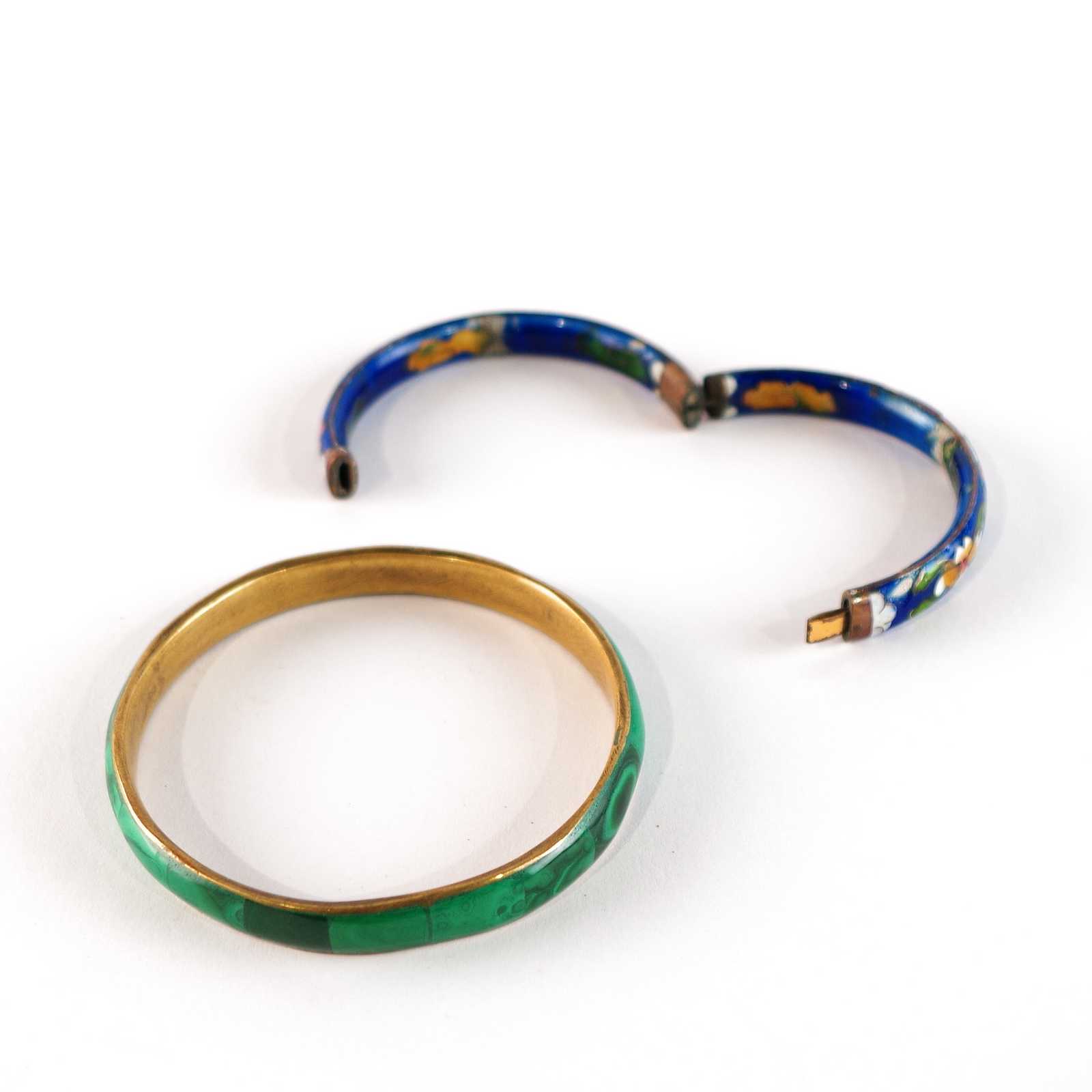 Auktioner Guld, Silver & Smycken ARMRINGAR 2st bl.a. med emaljarbete. D:6x5cm/6,5cm. (emaljsläpp förekommer)