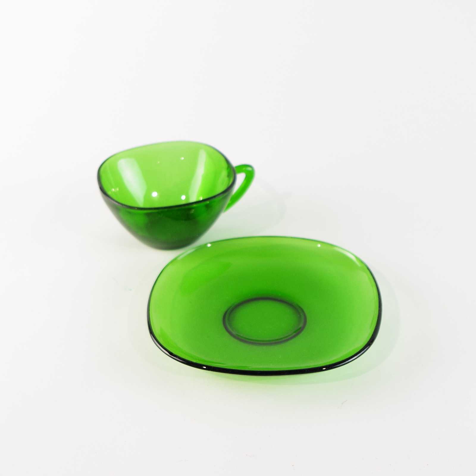 GLASSERVIS retro. 14 delar totalt. B:9cm kaffekoppar.