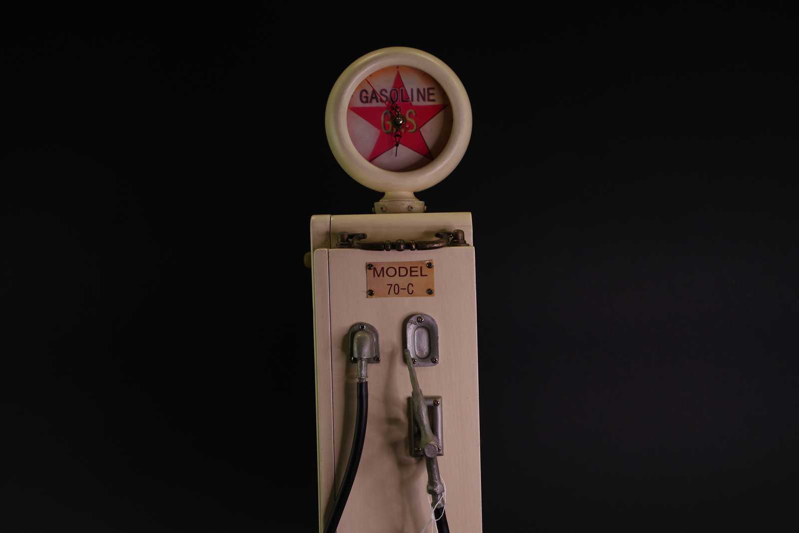 Bilder BENSINPUMP i trÀ med klocka och flaskgömma H:60 cm