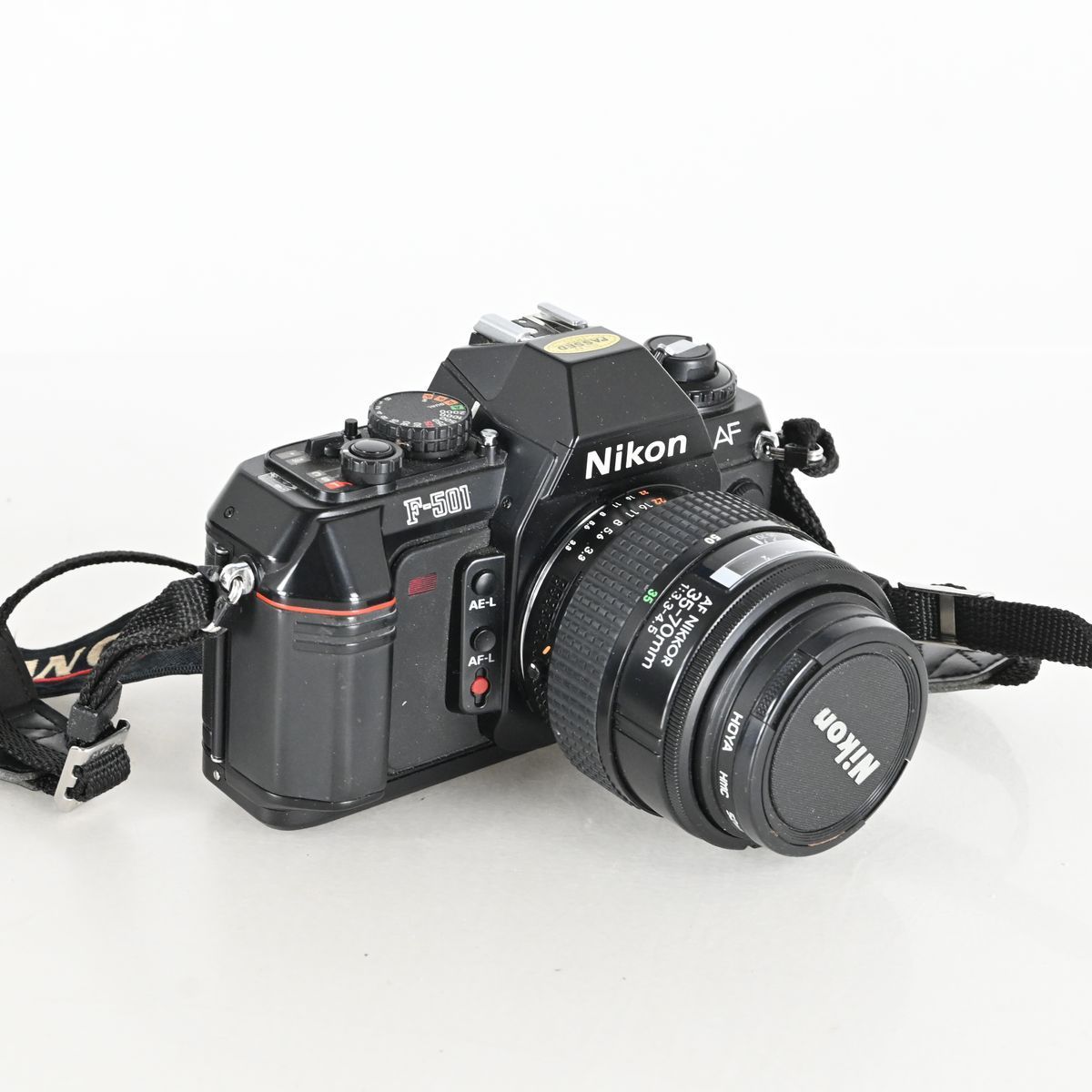 Bilder Analogkamera, Nikon F-501, med tillbehör
