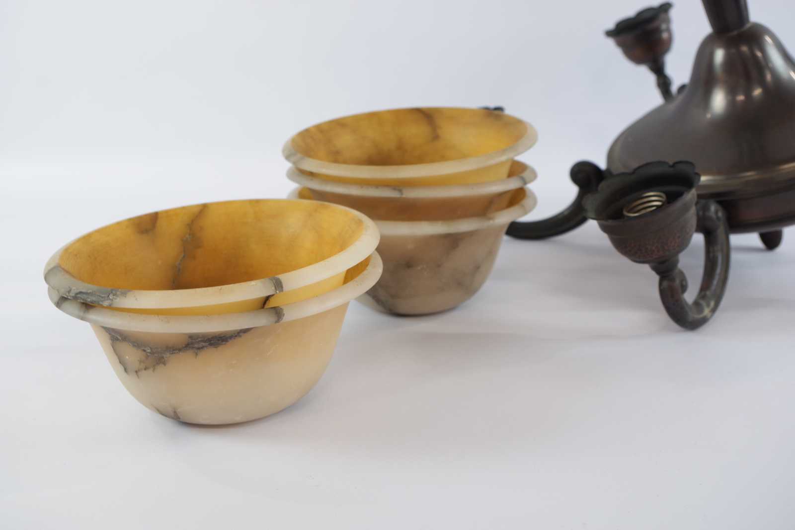 Bilder TAKLAMPA 5 armar, kupor i glas, 1900 talets första hälft. D:60cm H:78cm